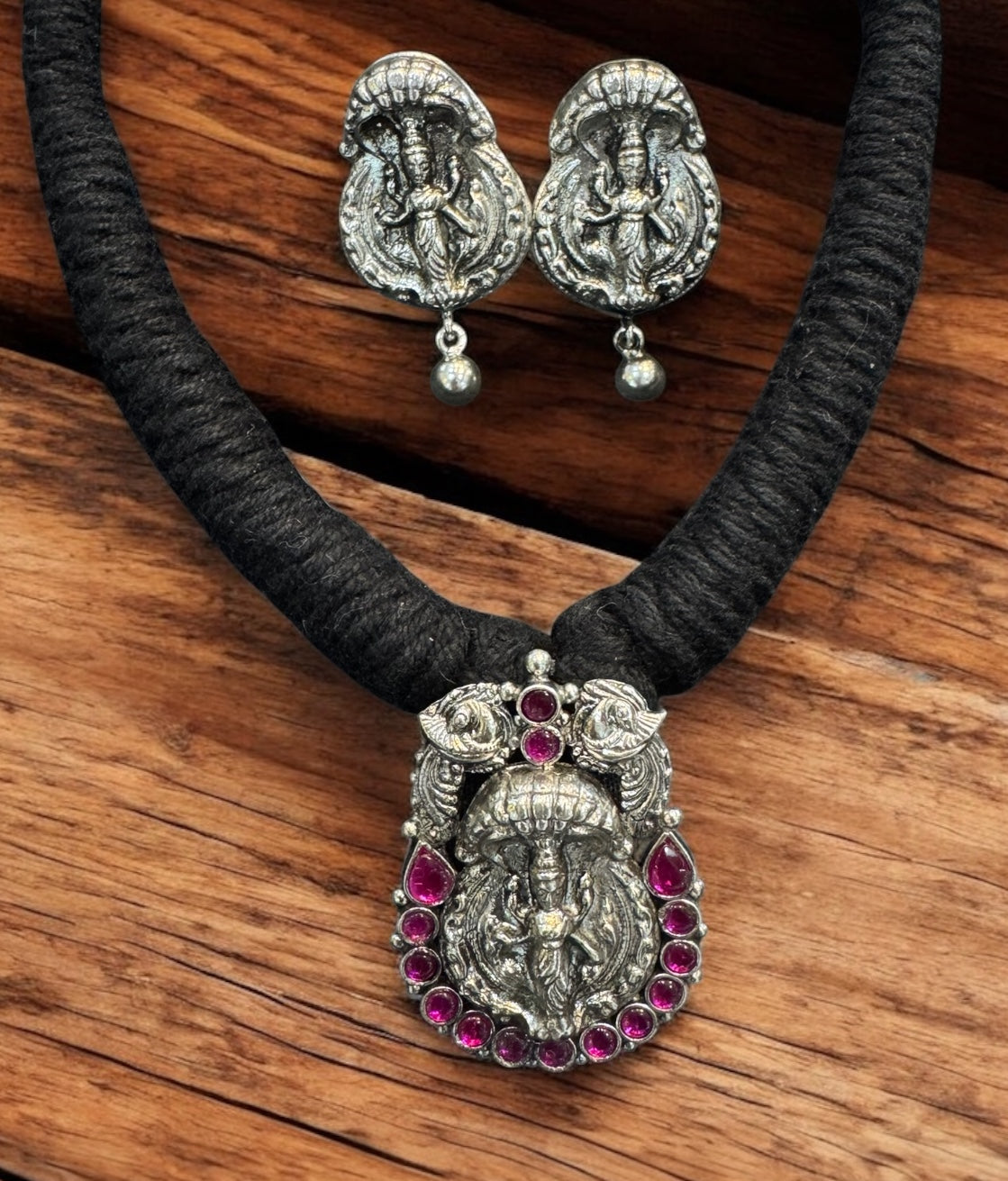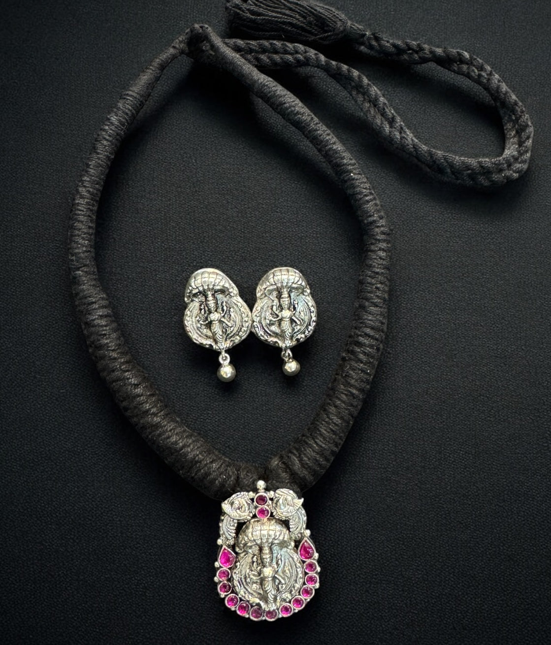 The Adishesha Lakshmi Silver Thread Necklace & Plain Earrings