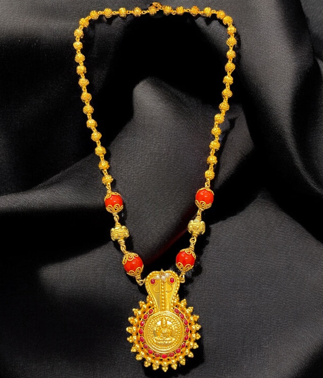 The Vijeta Silver Coral Pathak Mohanmale Necklace-Buy Gold Plated Paathak pendant Online - KO Jewellery