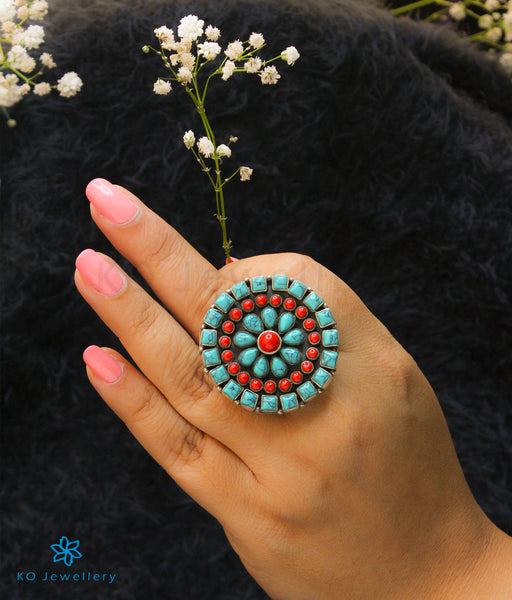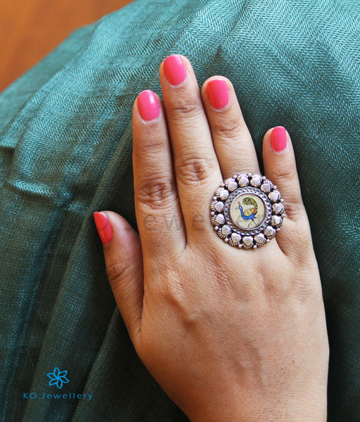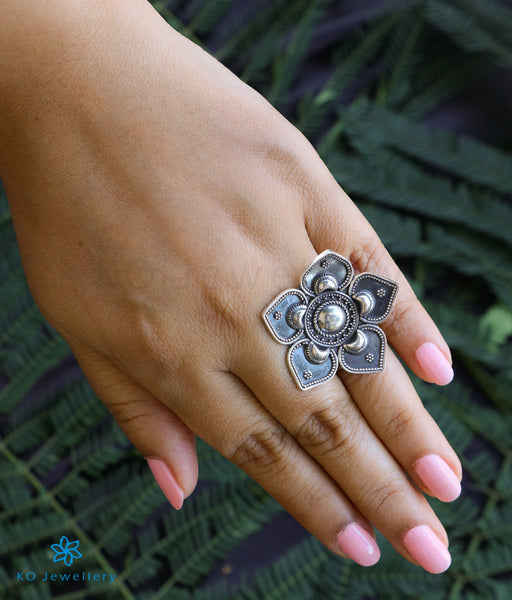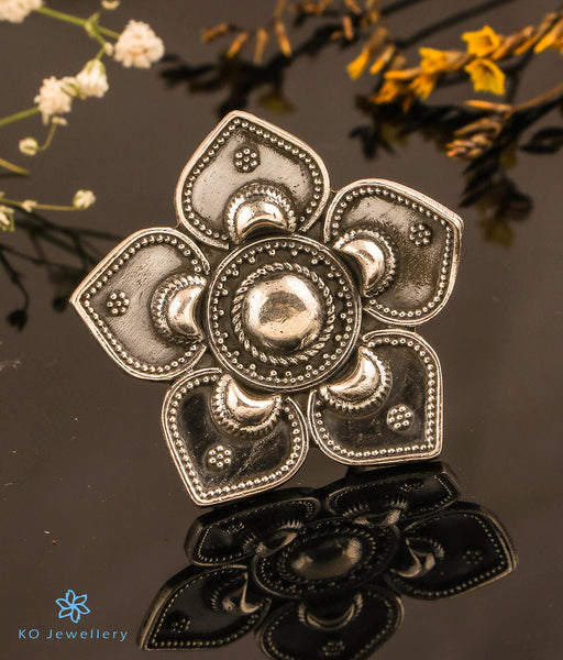 The Nakshatra Silver Traditional Close Setting Diamond Adjustable Vanki Finger Ring