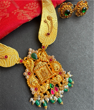 The Saumika Antique Silver Kemp Lakshmi Kasumala Coin Necklace & Earrings