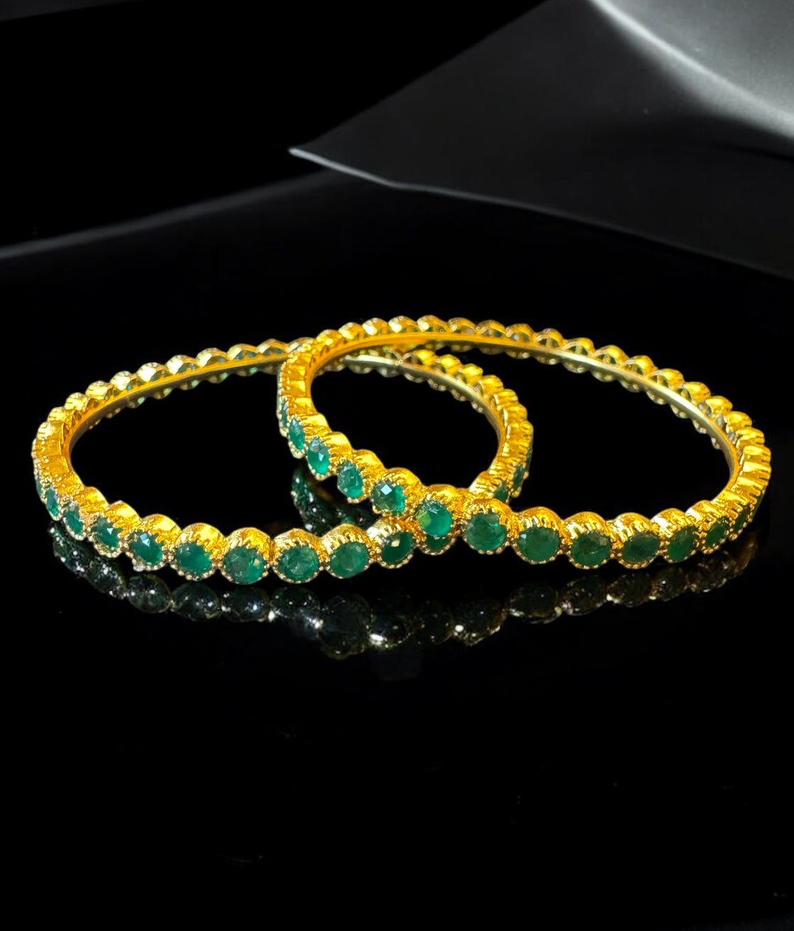 The Tanmaya Silver Green Kemp Bangle-Single (Size /2.2/2.4/2.6/2.8)