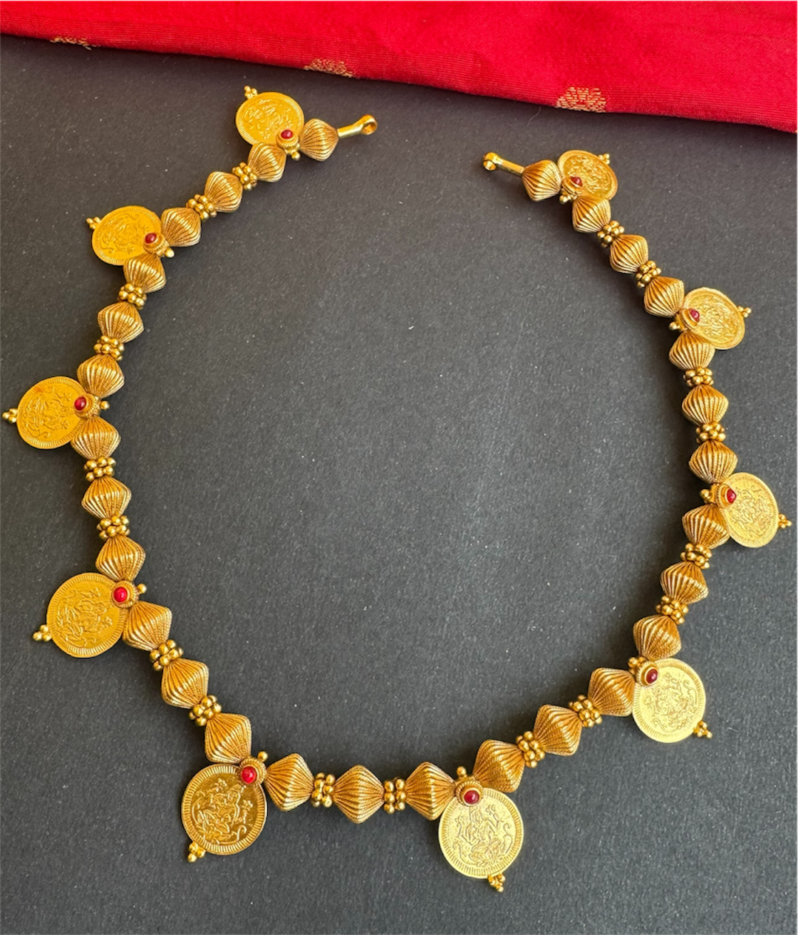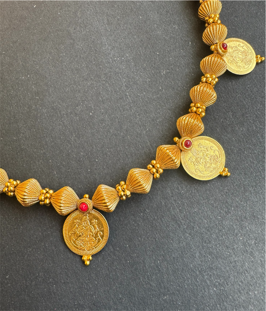 The Vedika Antique Silver Lakshmi Kasumala Coin Necklace (Long)