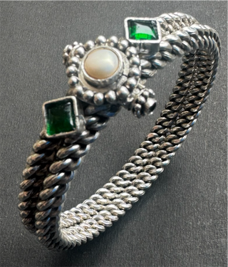 The Parag Silver Pearl Filigree Bangle-Single (Size 2.2/2.4/2.6/2.8)