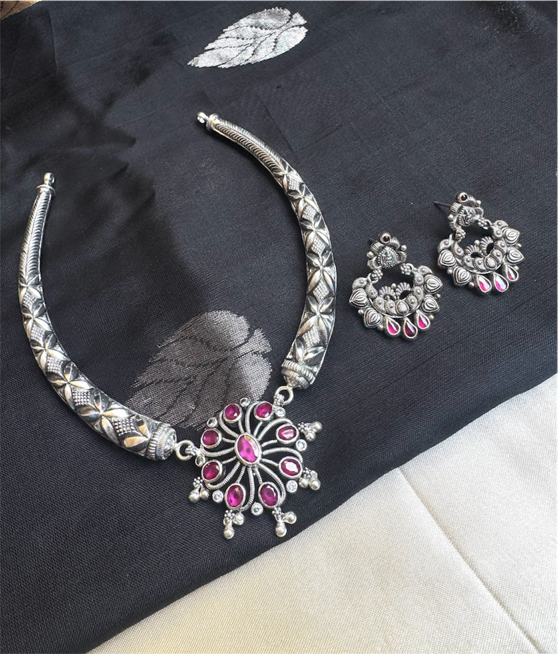 Expertly crafted in 92.5 pure sterling silver, the necklace is finished with a rich oxidised plating that enhances its antique character and highlights the intricate detailing. Every curve and contour is carefully handcrafted by skilled artisans, giving the piece remarkable texture, dimension, and individuality.