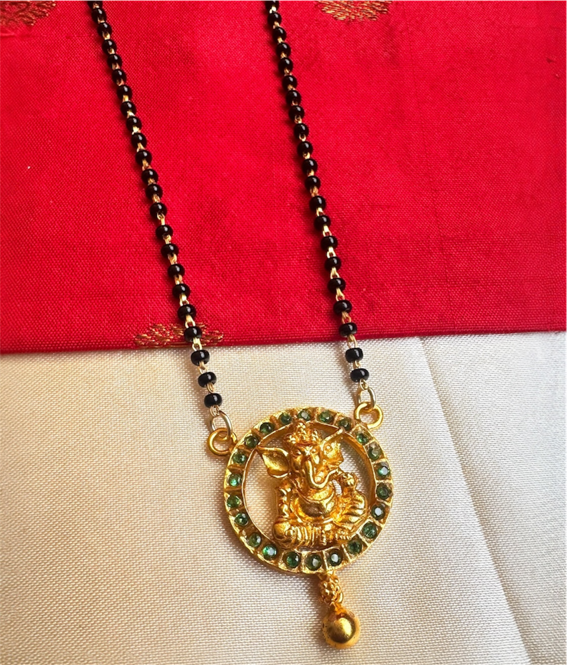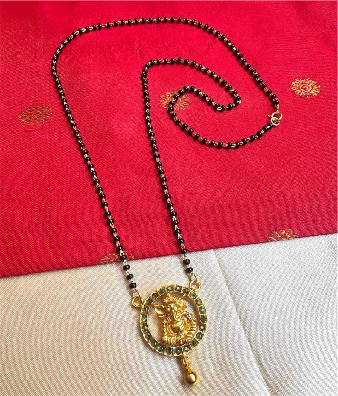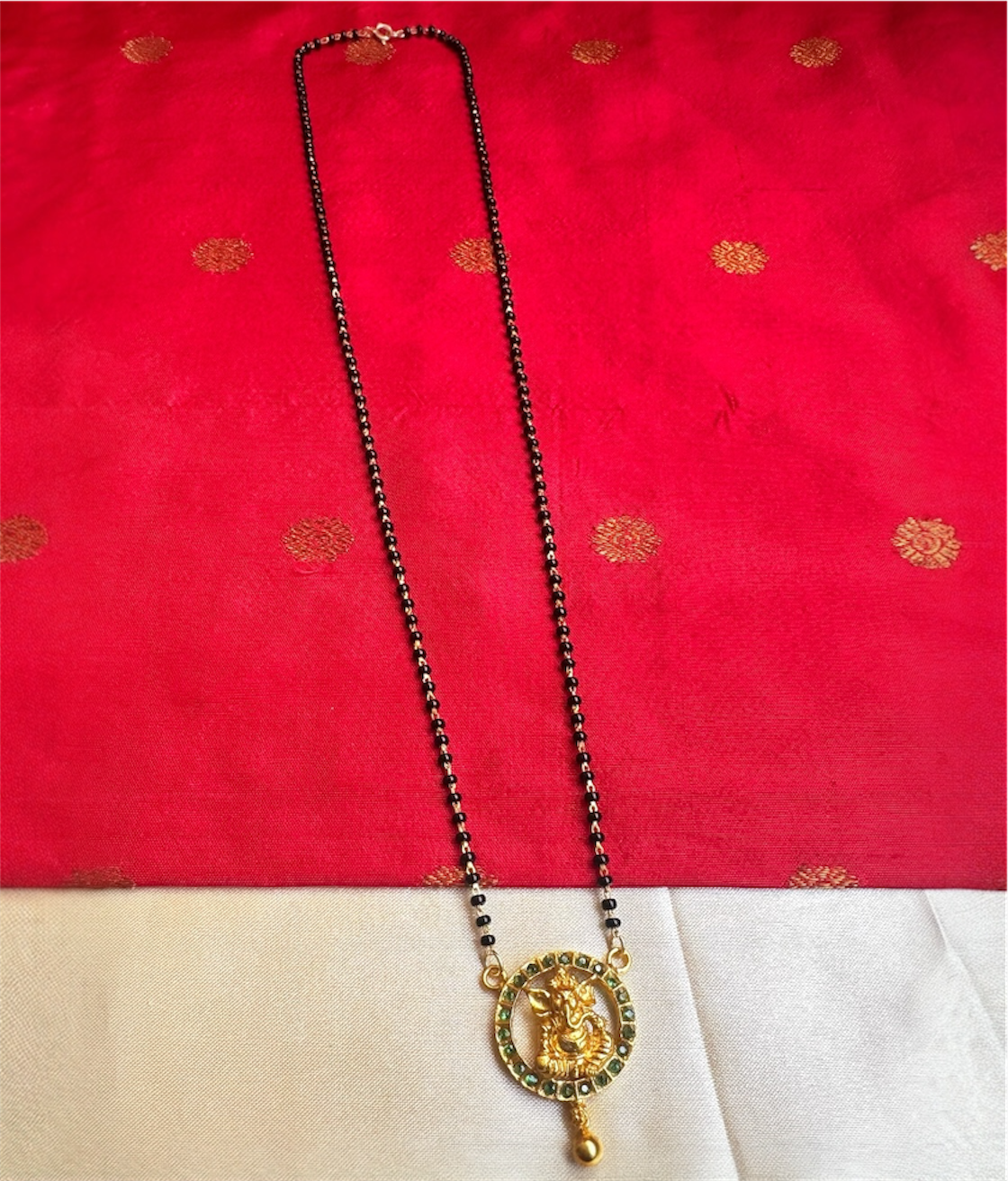 The Hrishita Silver Lakshmi Mangalsutra Necklace (Green)- Buy Mangalsutra Collection By Online. - KO Jewellery