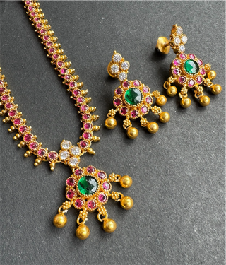 The Pushpita Kokkethathi Silver Kodava Green kemp Necklace & Earrings