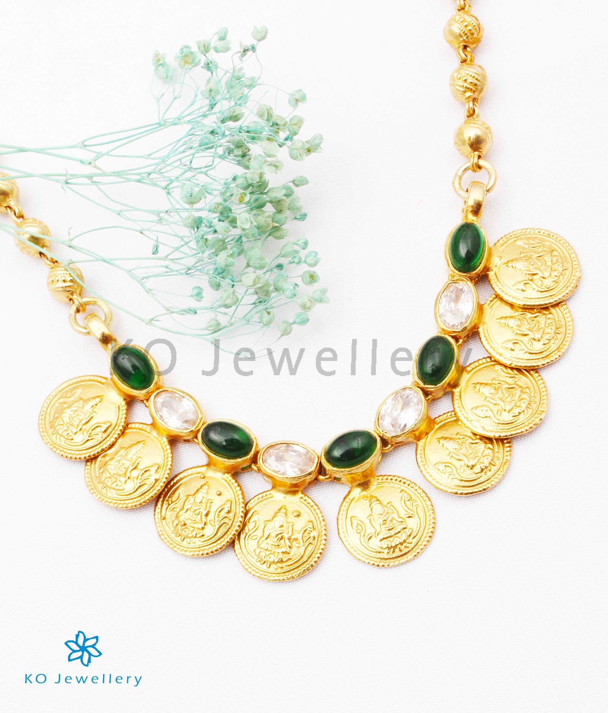 The Prarthana Silver Coin Necklace (Green)
