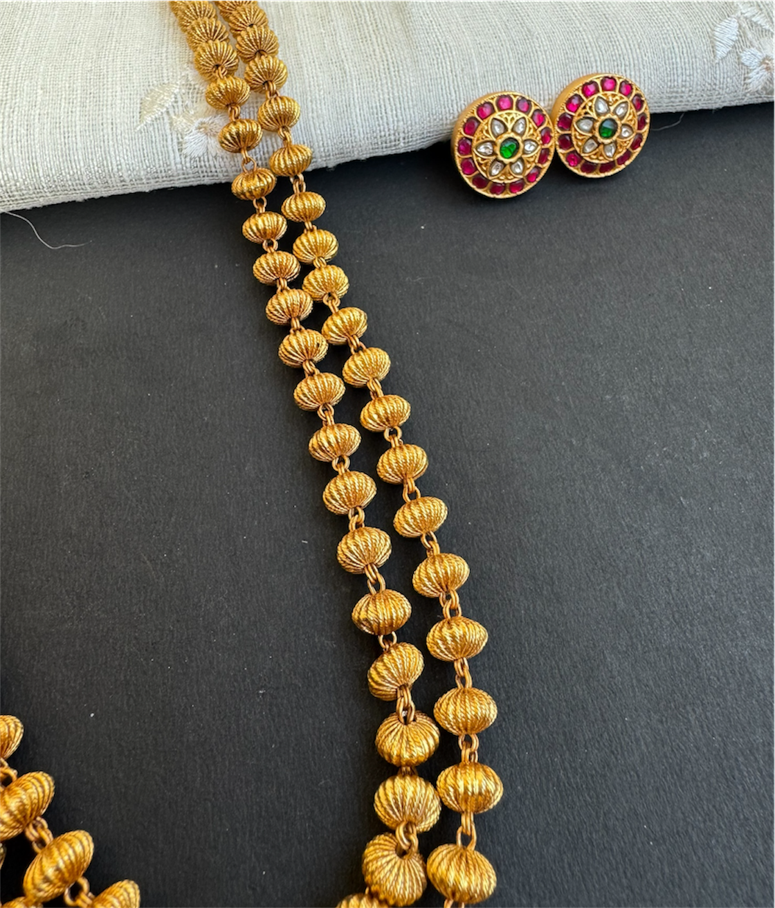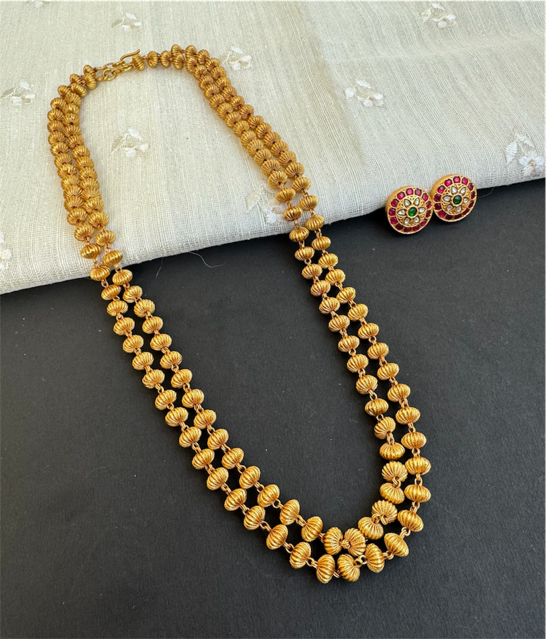 The Vatsala Silver 2 Layer Jomale Chain & Earrings-Buy Silver Temple Jewellery Online - KO Jewellery
