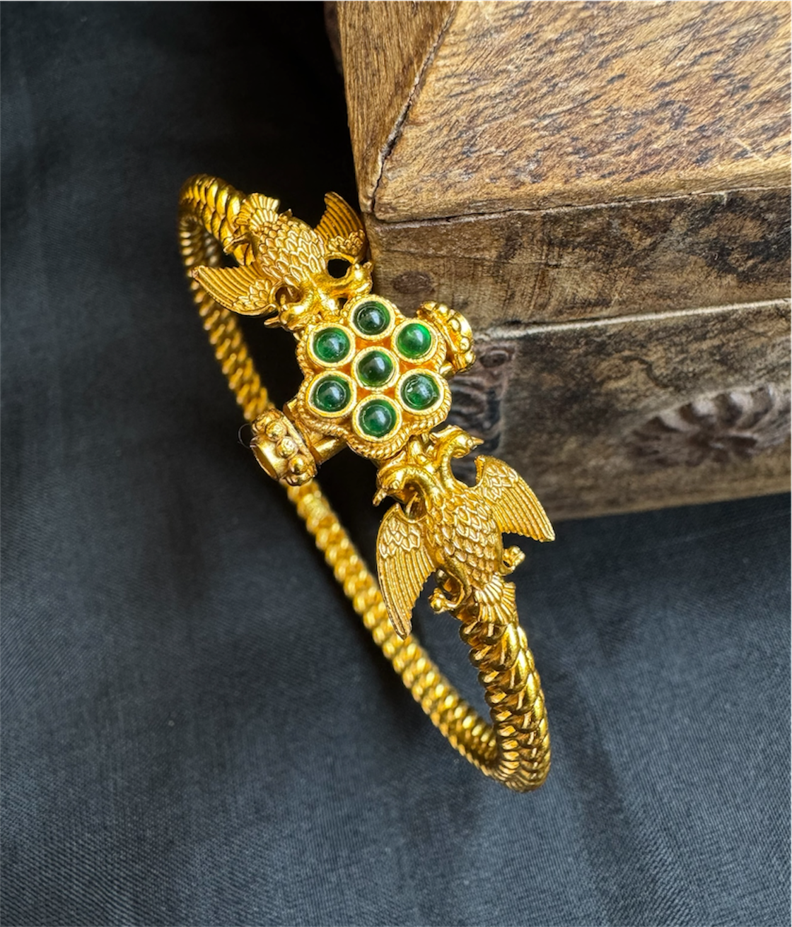 The Virat Silver Gandaberunda Golusu Bangle-Single (Size /2.2/2.4/2.6/2.8) (Green)