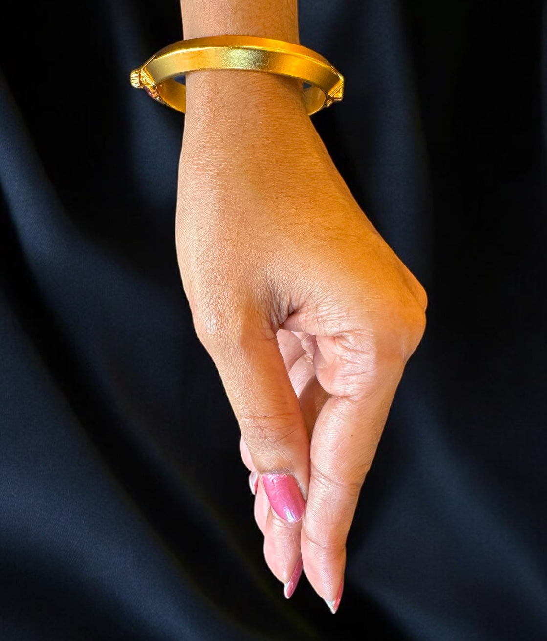 A gorgeous vintage handcrafted Kada in Sterling Silver (92.5%) embellished with intricate design. This openable bracelet that has an antique finish will make a great accessory and will add tons of grace and allure to your look and gold plated. It is openable and can fit most sizes.