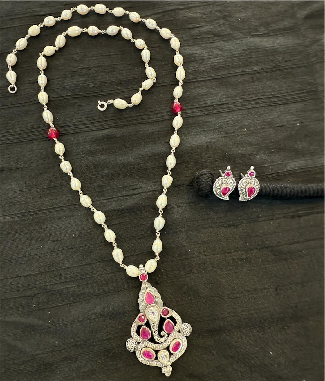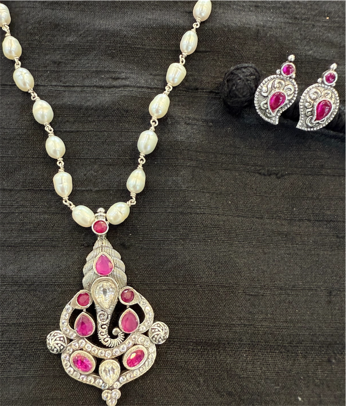 The Sumukh Silver Ganesha Pearl Necklace & Earrings