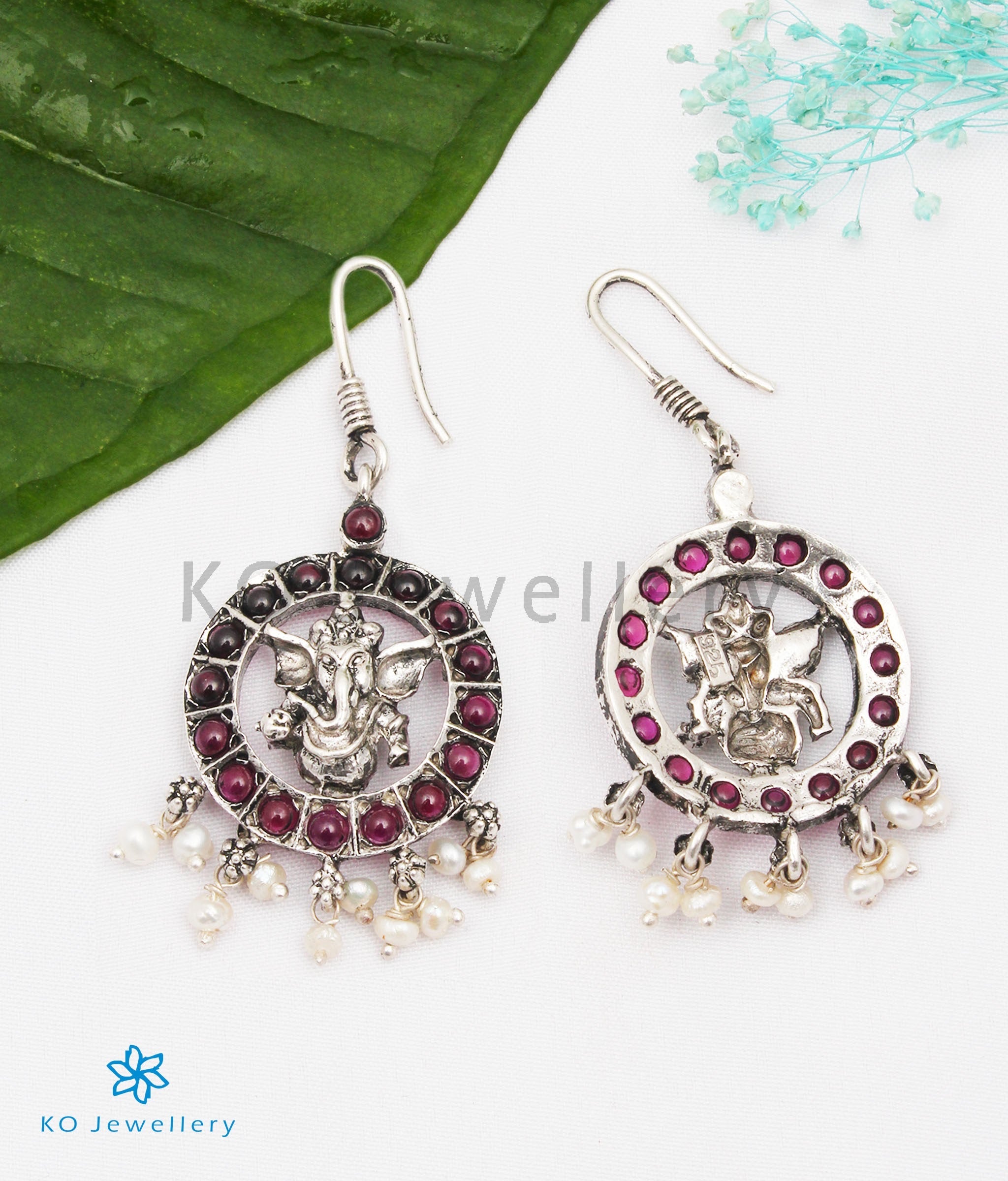 The Atharva Silver Ganesha Earrings (Oxidised)