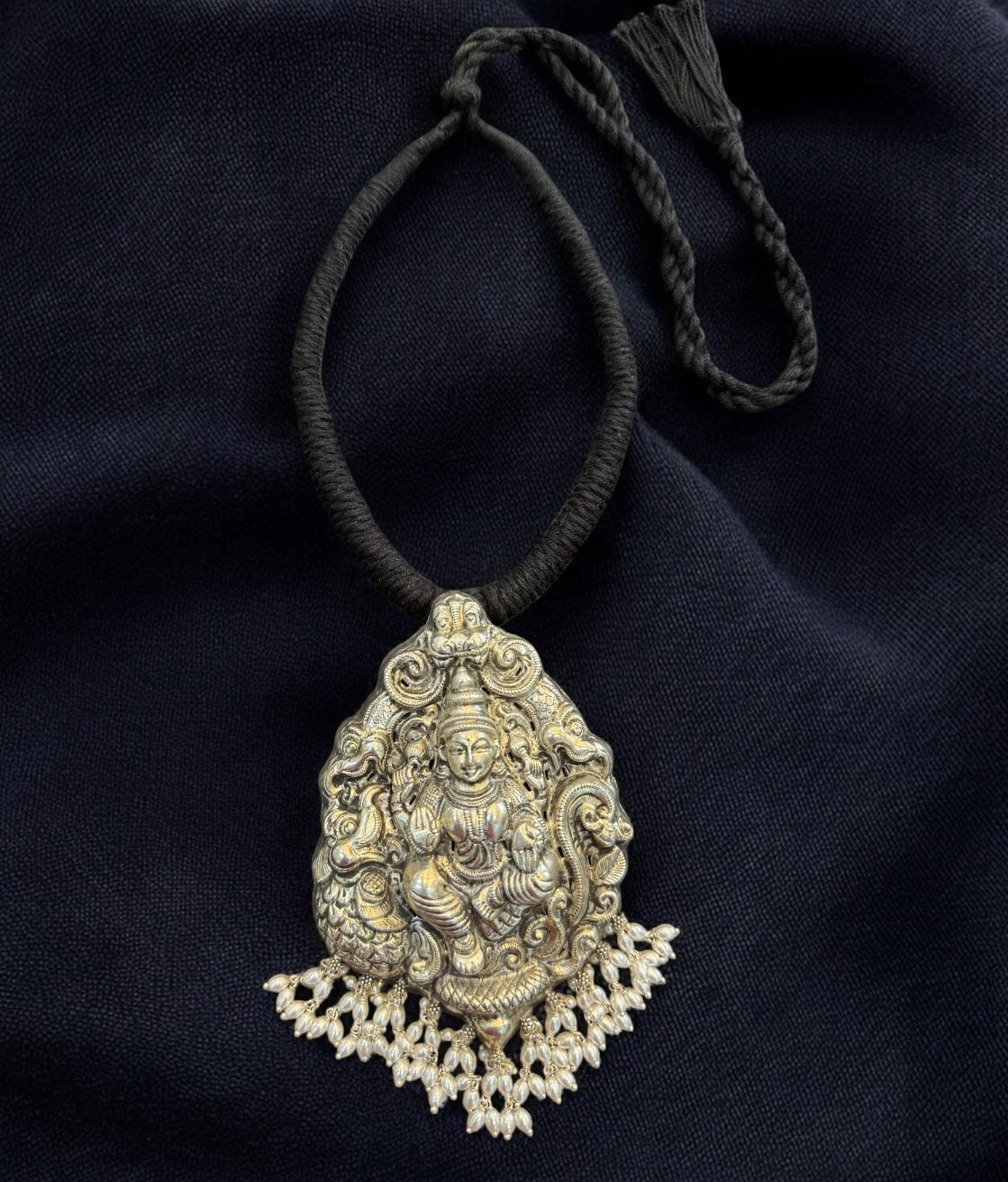 Iconic Goddess Pendant on 925 Silver Nakkasi Necklace - Handcrafted divinity