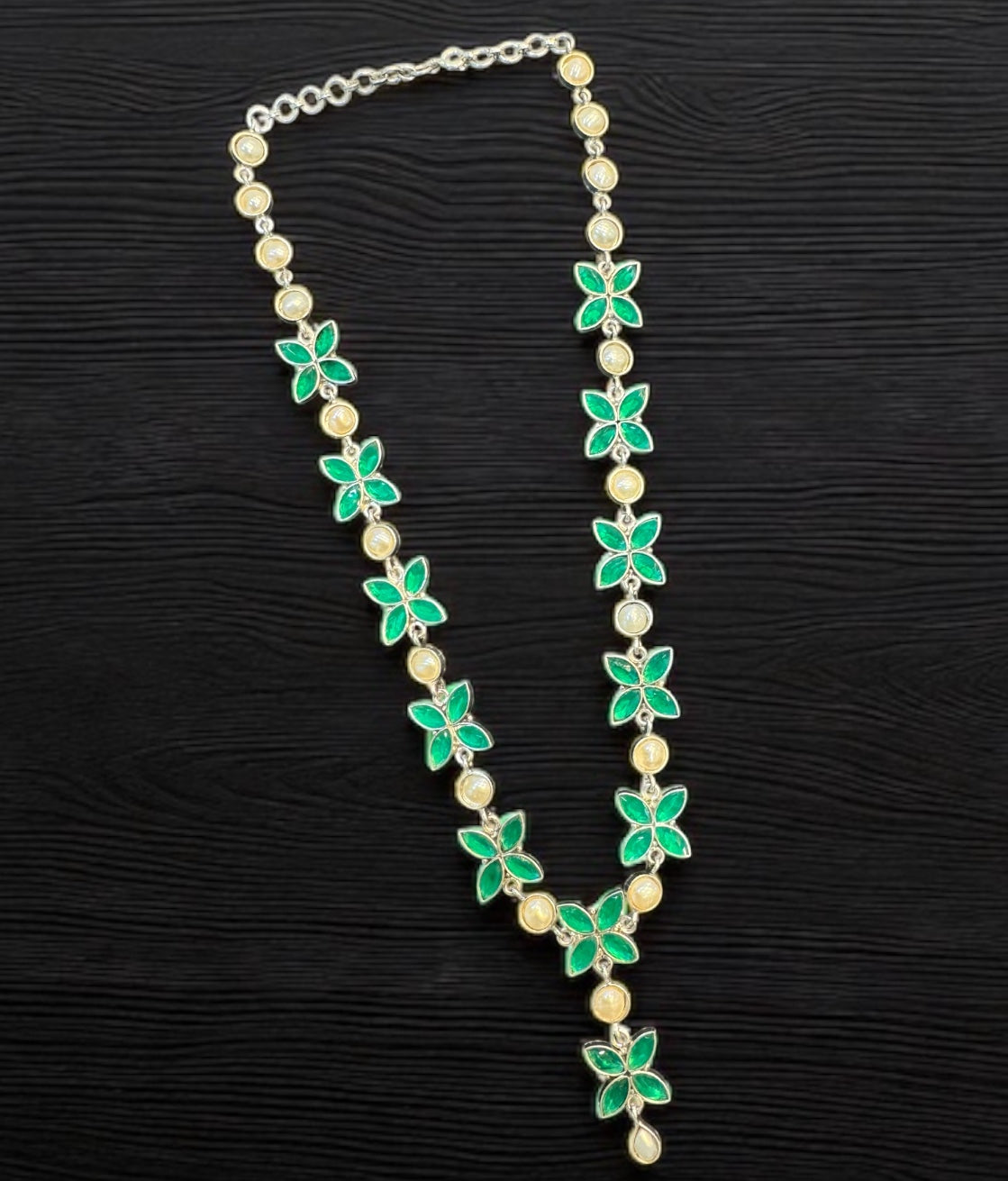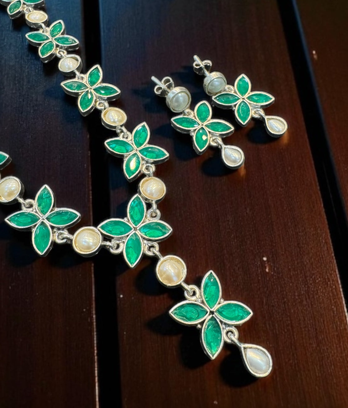 The Soha Silver Polki Necklace & Earrings (Green) - Buy casual necklaces in 925 Hallmark Sterling Silver - KO Jewellery