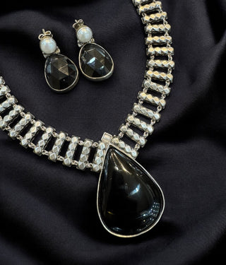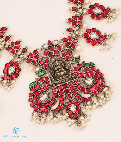 The Pushpita Kokkethathi Silver Kodava Green kemp Necklace & Earrings