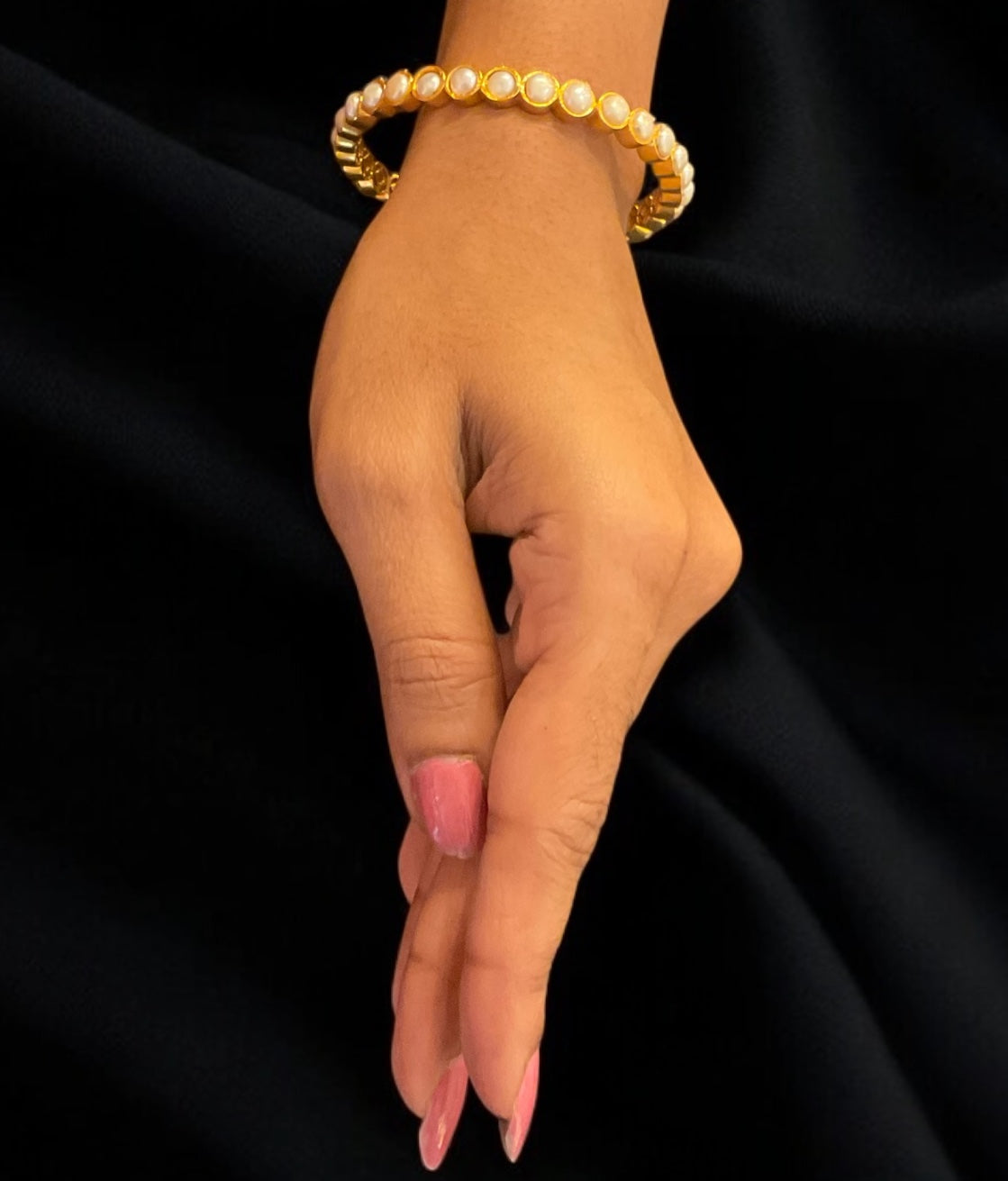 The Mrinmoyee Pearl Bangle- Single (Size/2.2/ 2.4/2.6/2.8)-Buy Silver Bangle Jewellery in Sterling Silver (92.5%). - KO Jewellery