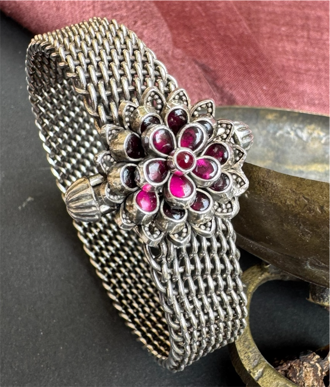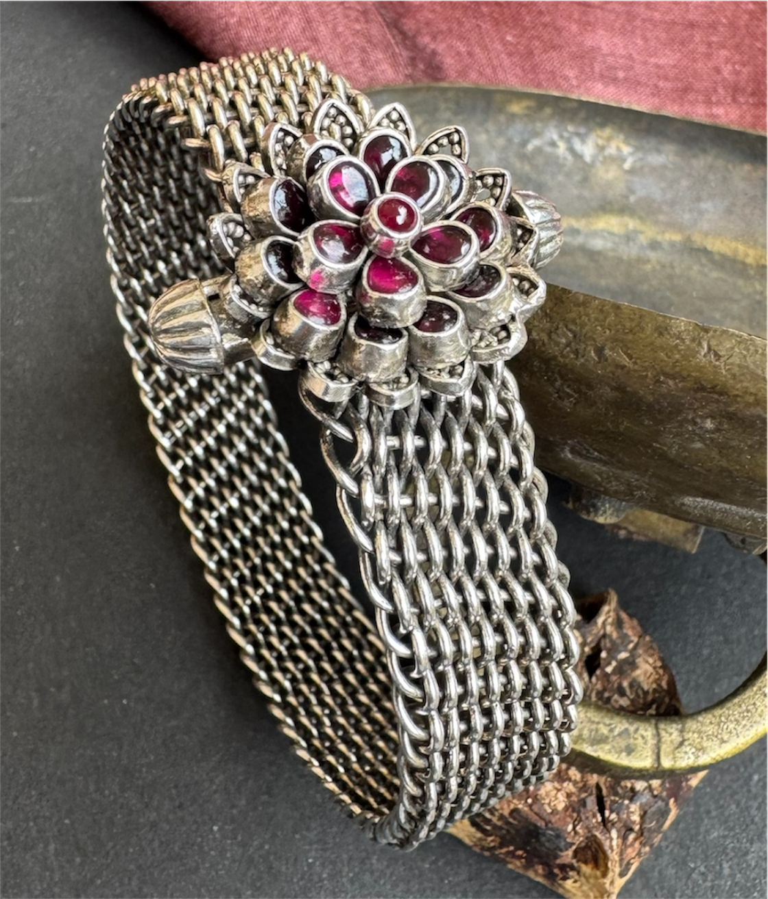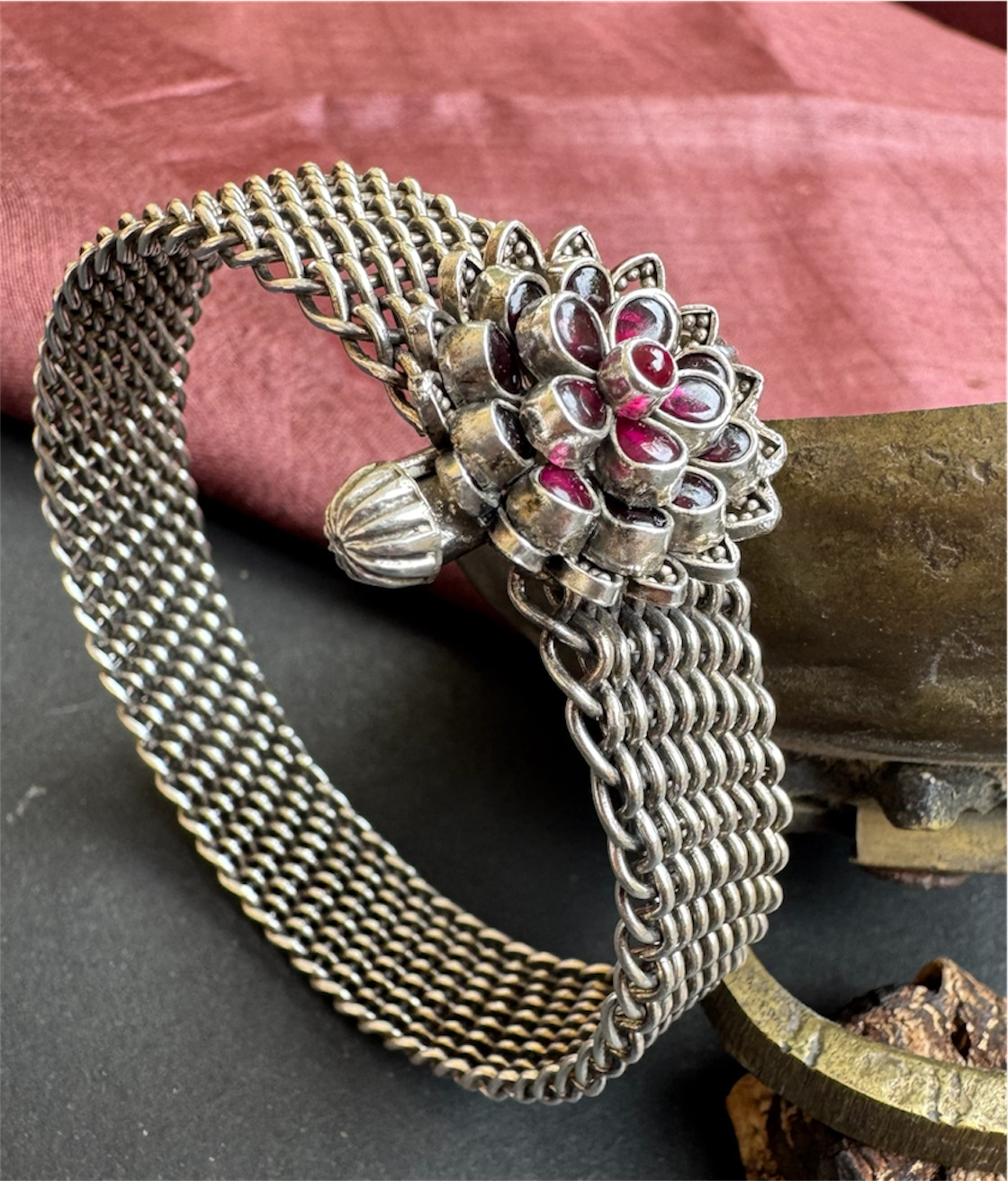 The Abhijita Silver Mesh Kemp Bracelet- Single (Oxidised/Size 2.2/2.4/2.6/2.8)