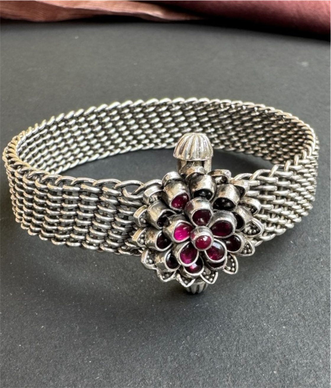 The Abhijita Silver Mesh Kemp Bracelet- Single (Oxidised/Size 2.2/2.4/2.6/2.8)-Buy Silver Bangle (92.5%) from trusted jewellery - KO Jewellery