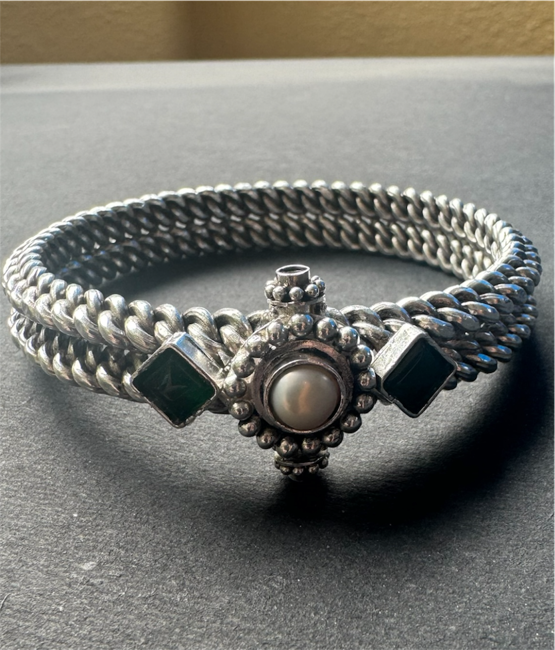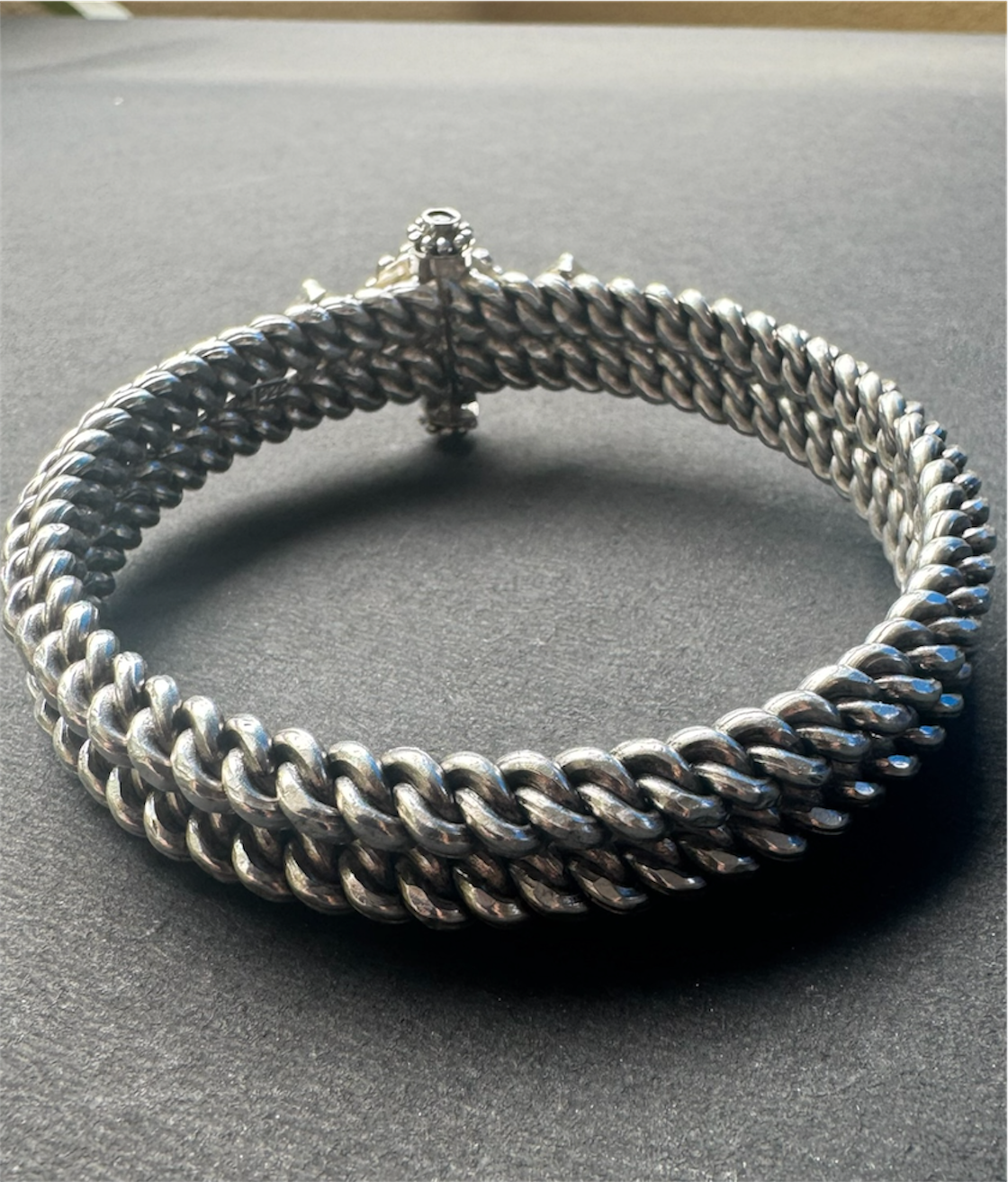 This unique construction gives the bracelet a solid, bold, and truly mesmerising look, making it a striking statement piece.