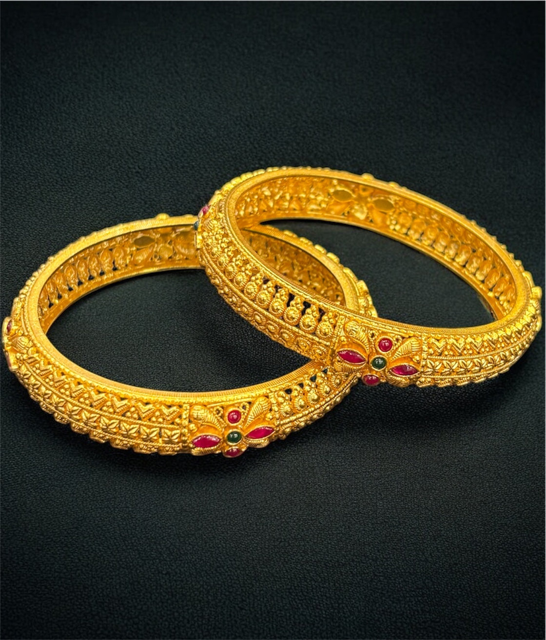 Each piece is meticulously made from 92.5 Sterling Silver, then gold-dipped using a special process to achieve a rich, antique finish that mirrors the look of real gold. The intricate patterns reflect the beauty of traditional craftsmanship, making these bangles a meaningful symbol of grace and tradition.