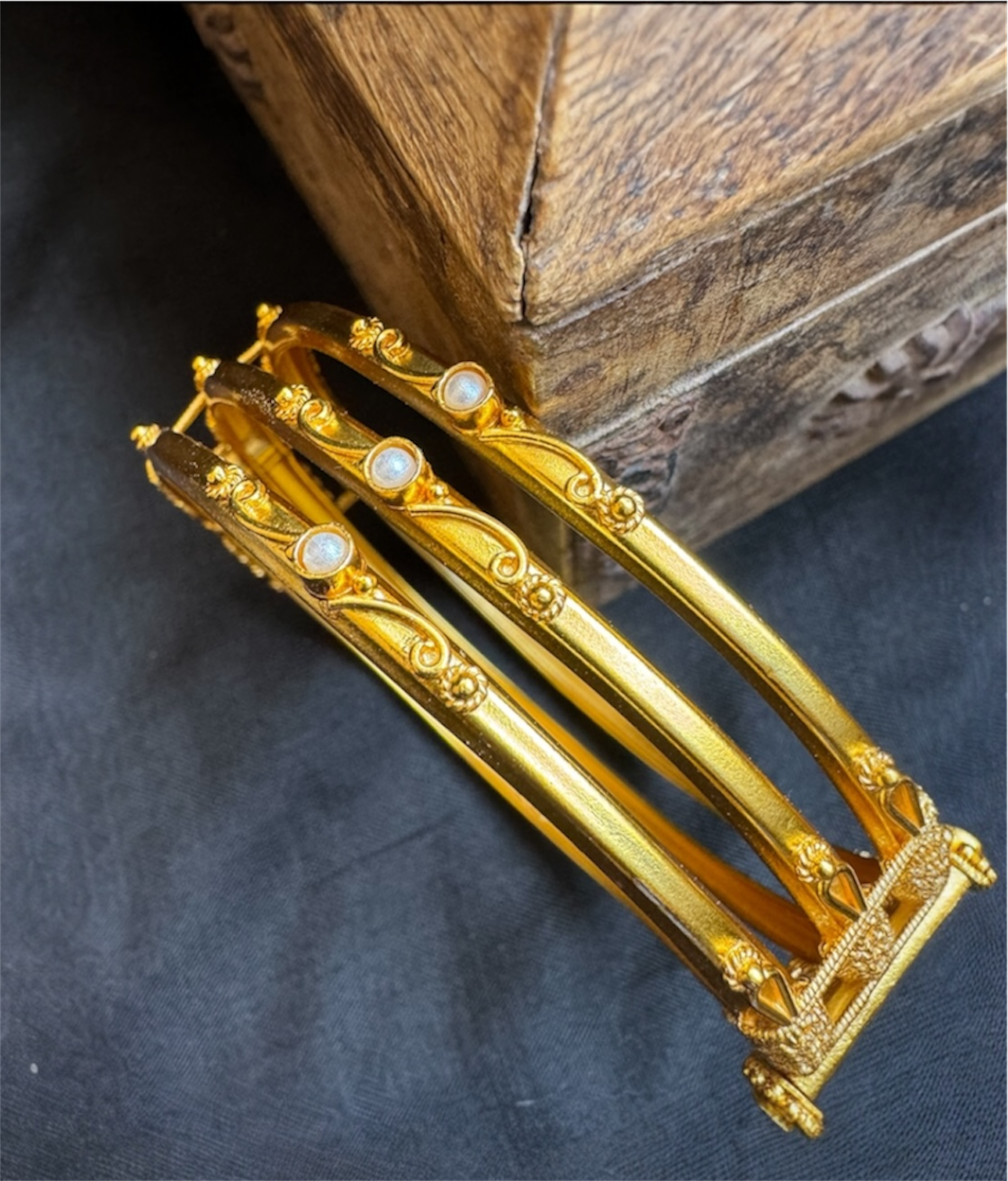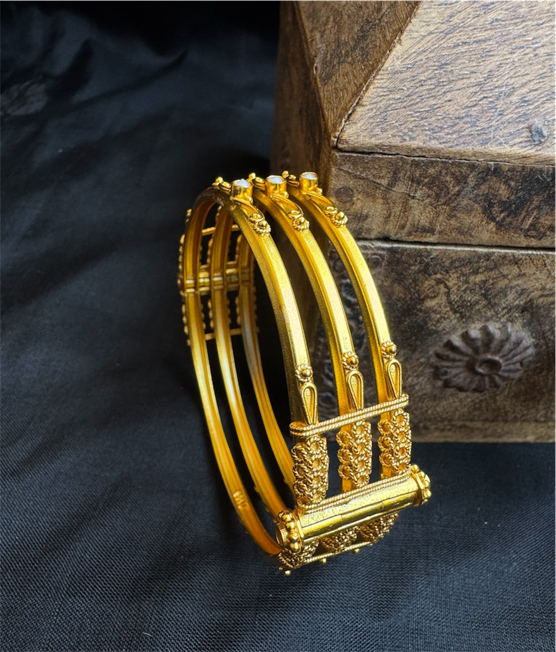 Introducing a KO original design, lovingly conceptualized and handcrafted in-house at our atelier. This piece draws inspiration from the iconic Coorgi kada, reimagined with a delicate twist on our bestselling design.