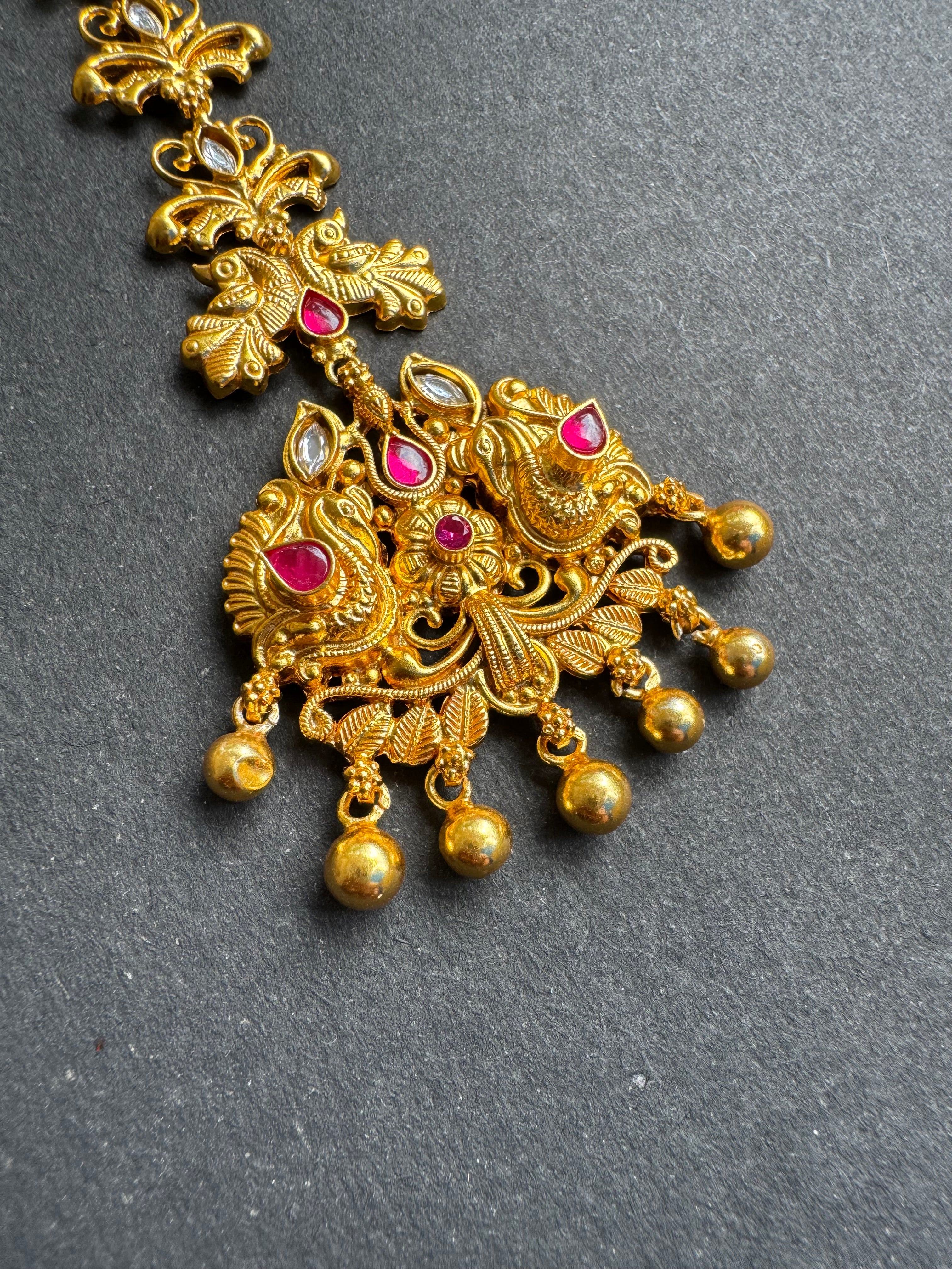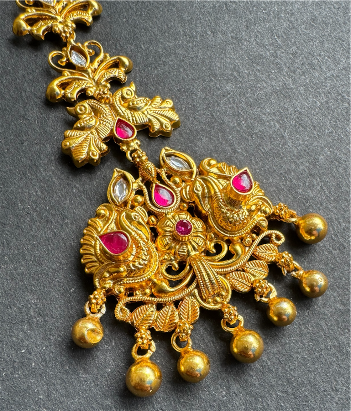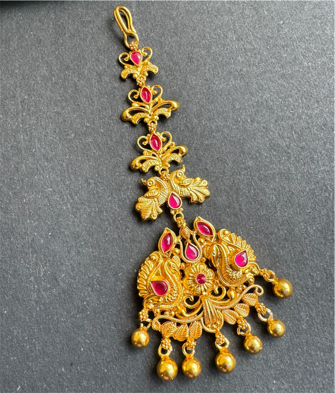 The Svarnika Silver Peacock Bridal Maang Tikka (Red)