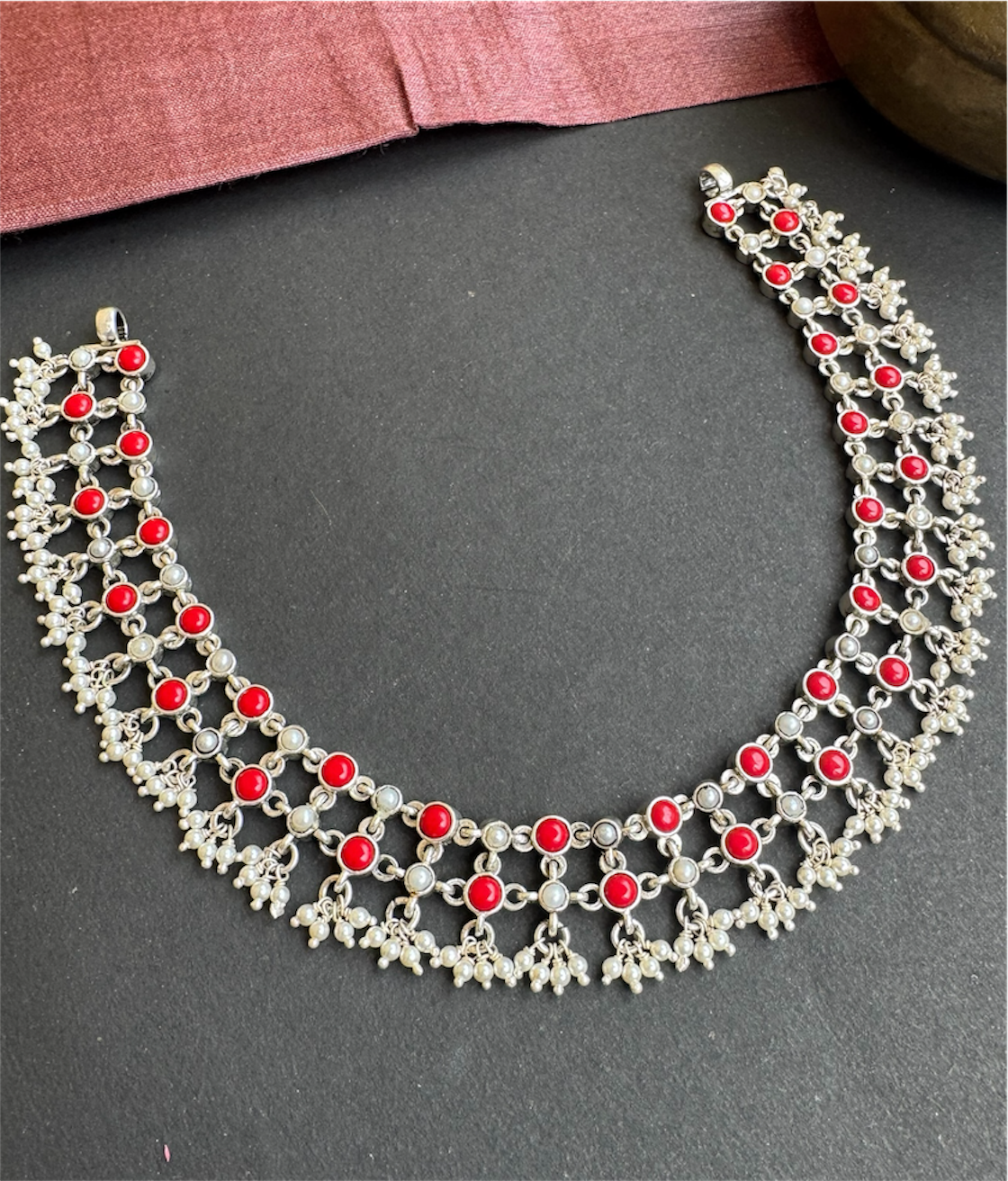 Gemstones used: Natural pearl ; powdered Coral.
