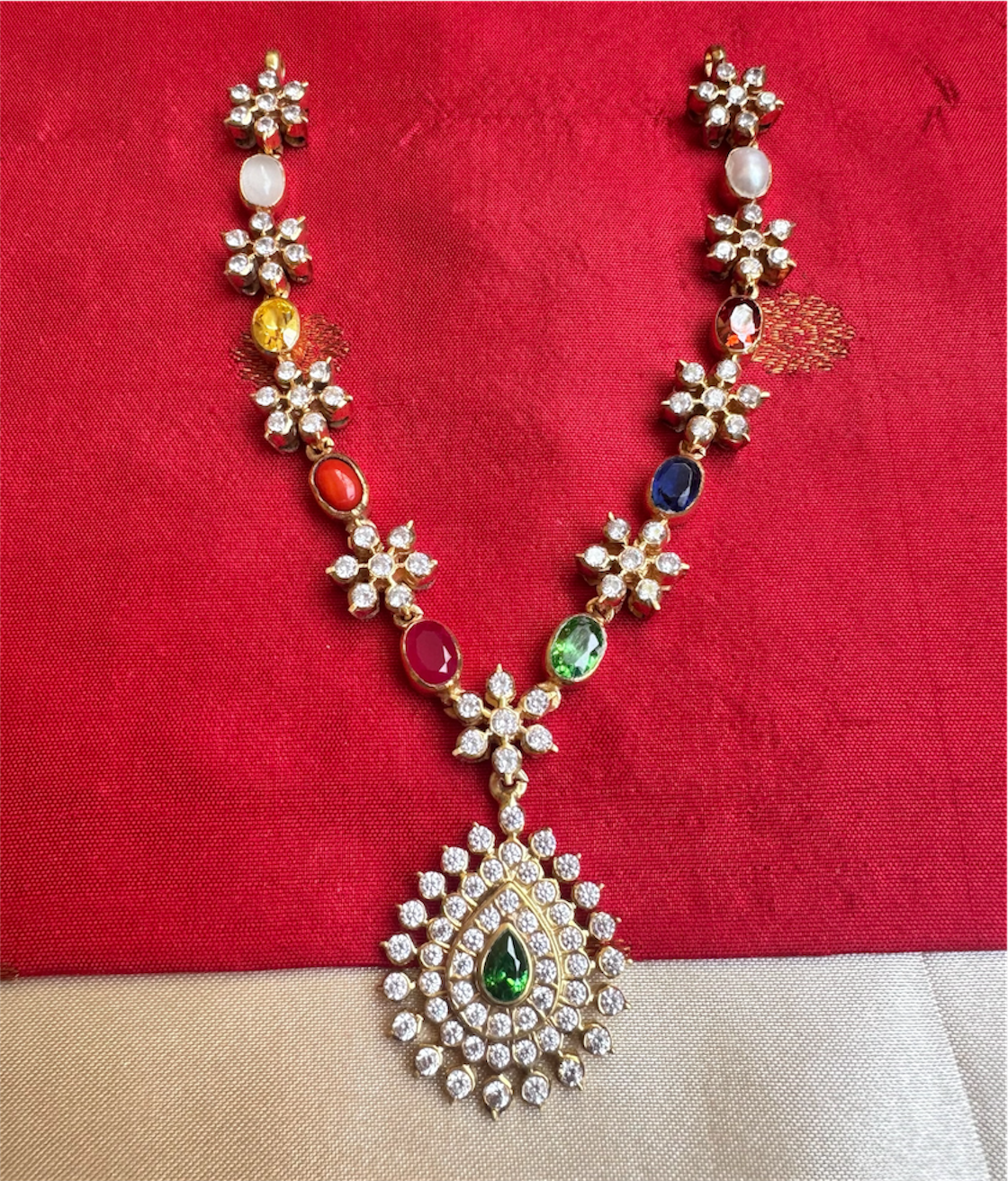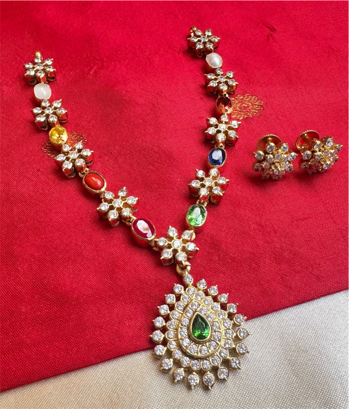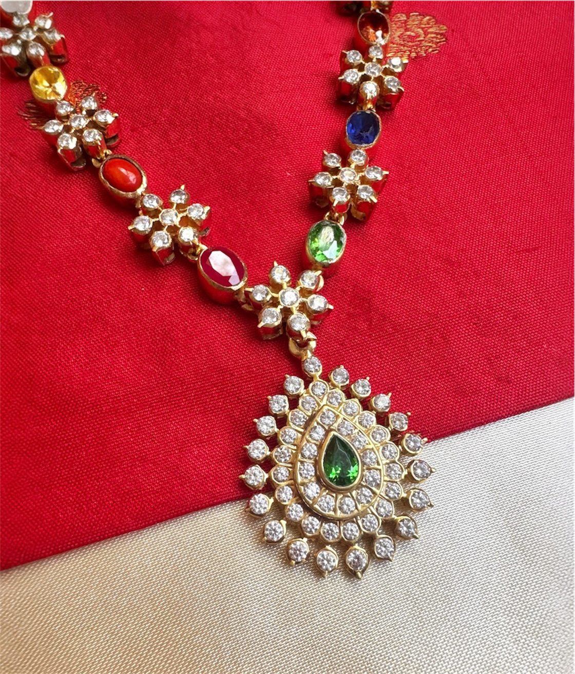 The Pritika Silver Navaratna Closed-setting Stone Necklace
