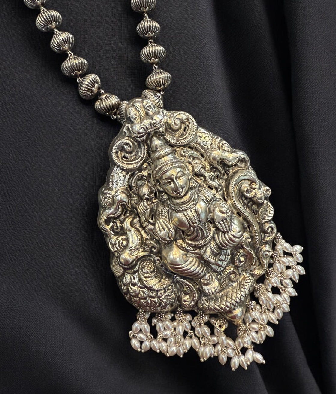 The Siri Lakshmi Nakshi Silver Necklace- buy LAkshmi NECKLACE in Pure Silver from trusted jeweller , - KO Jewellery
