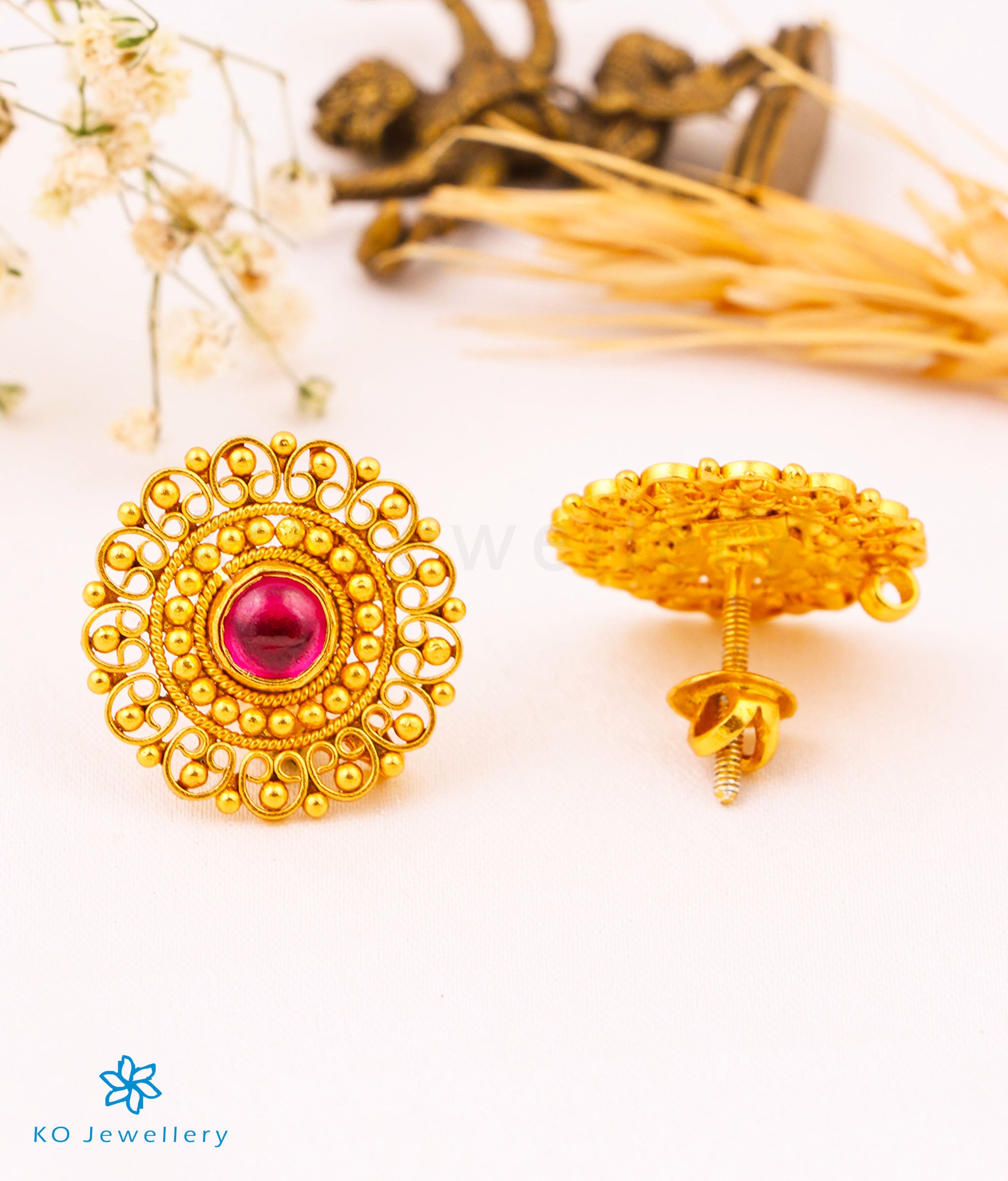These ornate Kempu earrings are truly a head-turner—an exquisite blend of heritage and elegance. Inspired by the techniques of ancient South Indian temple jewellery, each piece is meticulously handcrafted in 92.5% pure Sterling Silver and dipped in 24K gold for a rich, antique finish.