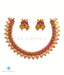 This is a traditional south Indian `kasina-hara', `kasu-malai' or coin necklace, depicting Laxmi the goddess of wealth. Crafted in pure silver and dipped in 24-carat gold this is a short choker style necklace and depicts Laxmi sitting on a lotus.Part of the Temple Jewellery collection of KO it is crafted using techniques used in ancient South Indian antique jewellery. All pieces in this collection are crafted in Sterling (92.5) Silver and gold-dipped in a special process to give them an antique look.It has ear-studs to match.