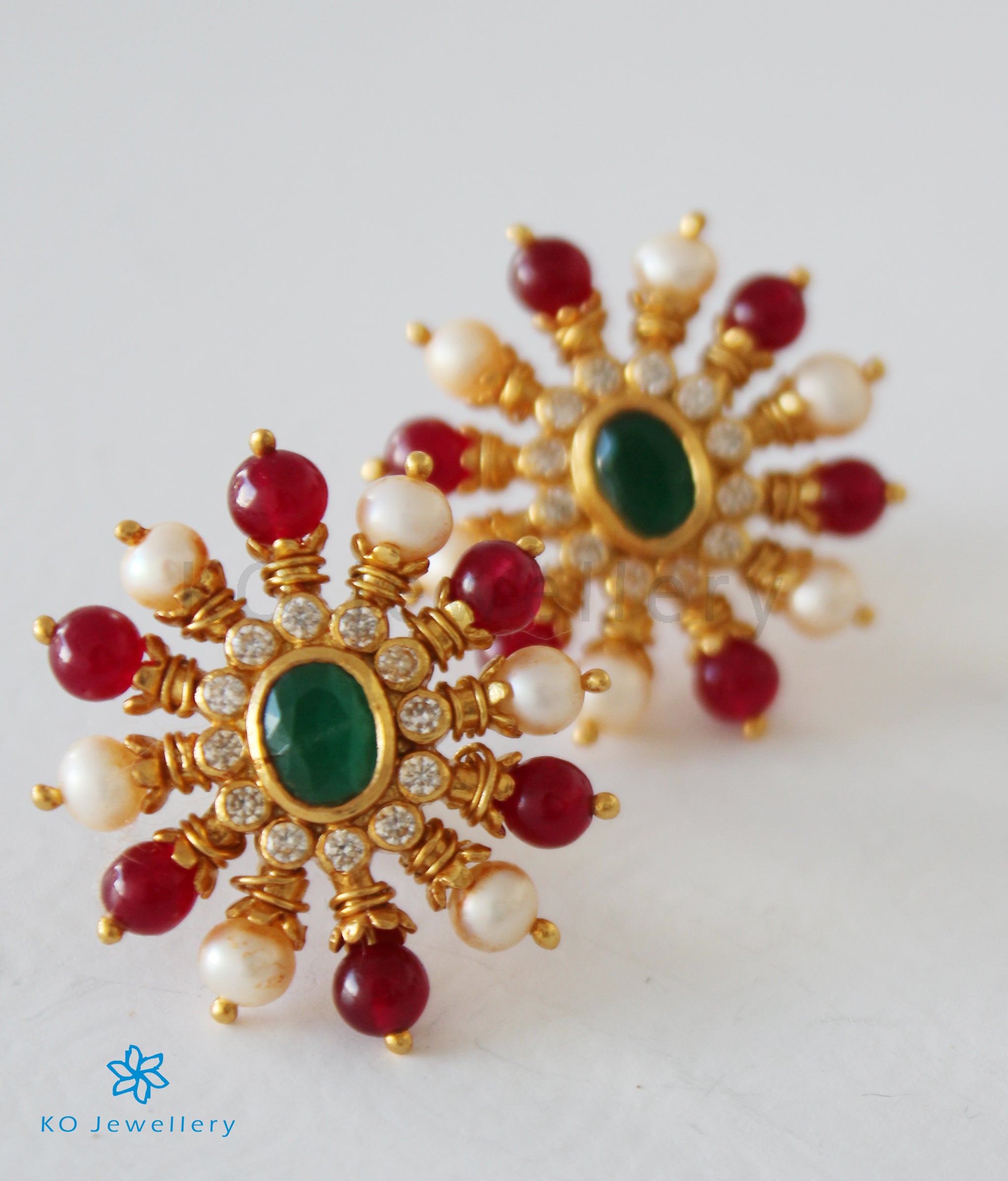 The design is both ethnic and timeless, offering a perfect blend of tradition and modern elegance. Whether you're dressing up for a special occasion or adding a touch of color to your everyday style, this earring makes a statement that lasts. The earstuds come with a bombay screw or screw-back closure.