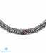 Grab everyone's attention with this amazing piece of jewellery. This is one piece which can be worn with the most traditional of outfits and with a chic evening gown too.This Sterling Silver (92.5%) oxidised necklace is in a choker design and sits very close to the neck; the design is a result of a masterful inter-weaving of silver which looks like a lovely mesh. Extra detailing is done with kempu stones. It is handcrafted using techniques used in ancient South Indian antique temple jewellery.