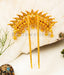 Adorn your hair with a traditional paisley/mango motif, hair-ornament studded with kempu stones. Tiny gold-dipped balls added for decoration give it an added attraction.It is handcrafted in Sterling Silver (92.5%) and gold-dipped to perfection using techniques used in ancient South Indian antique gold temple jewellery.This piece is also available in the antique silver finish on request.
