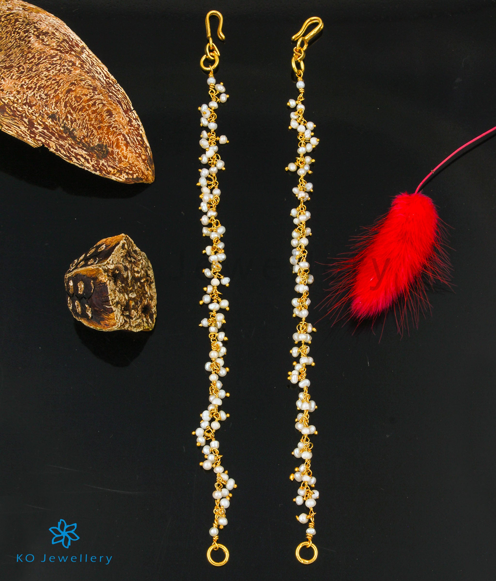 This pair of unique design; gold-plated matil or kaan chain with tiny pearls is handcrafted in Sterling silver (92.5%). Pair it with your traditional outfits, or style them with your indo- western outfits they look stunning .