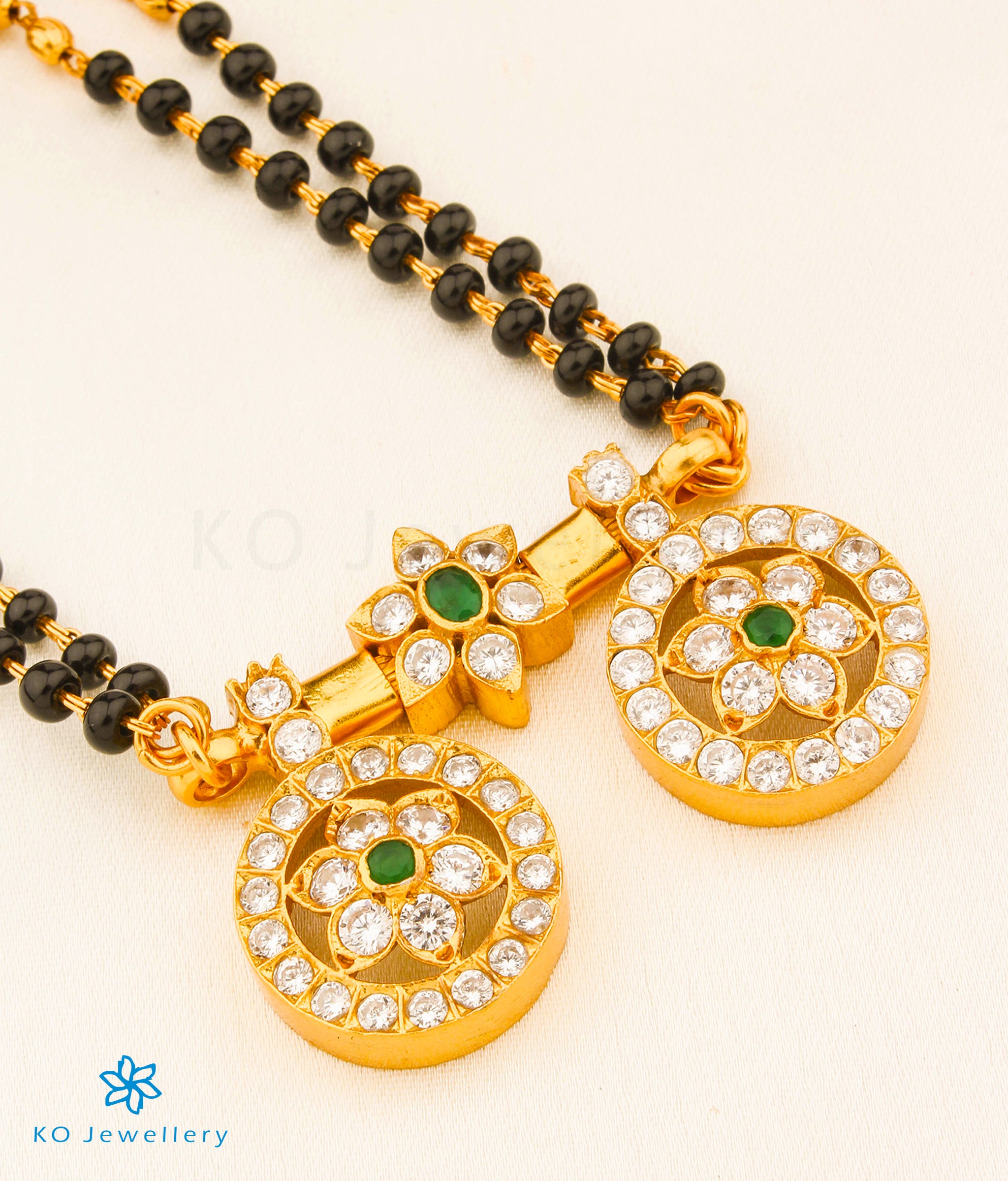An attractive mangalsutra in the traditional design, with black beads and a pretty pendant handcrafted in Sterling Silver (92.5%) and gold-dipped. Classy and chic this neck piece will blend effortlessly with all outfits.