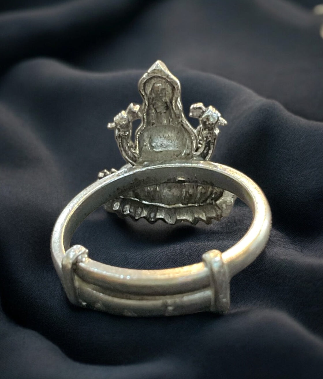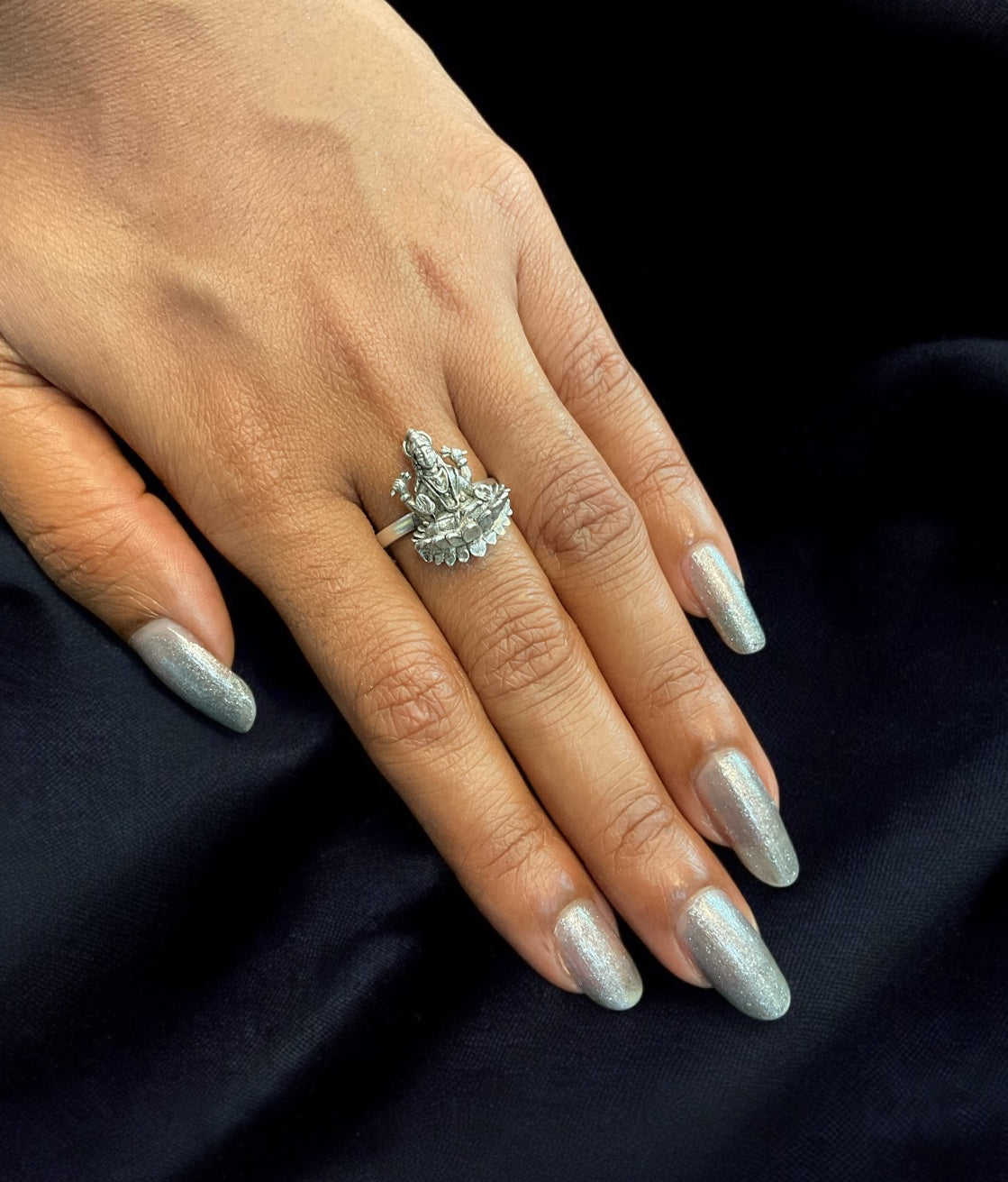 The Krutika Silver Lakshmi Adjustable Finger Ring