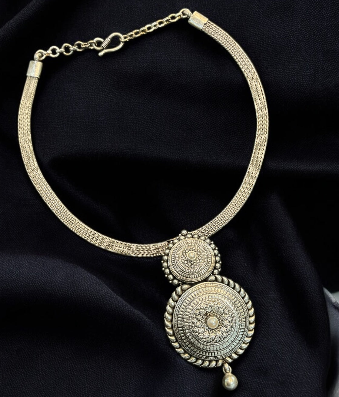 The Aadhya Silver Heritage Nakshi Pearl Necklace