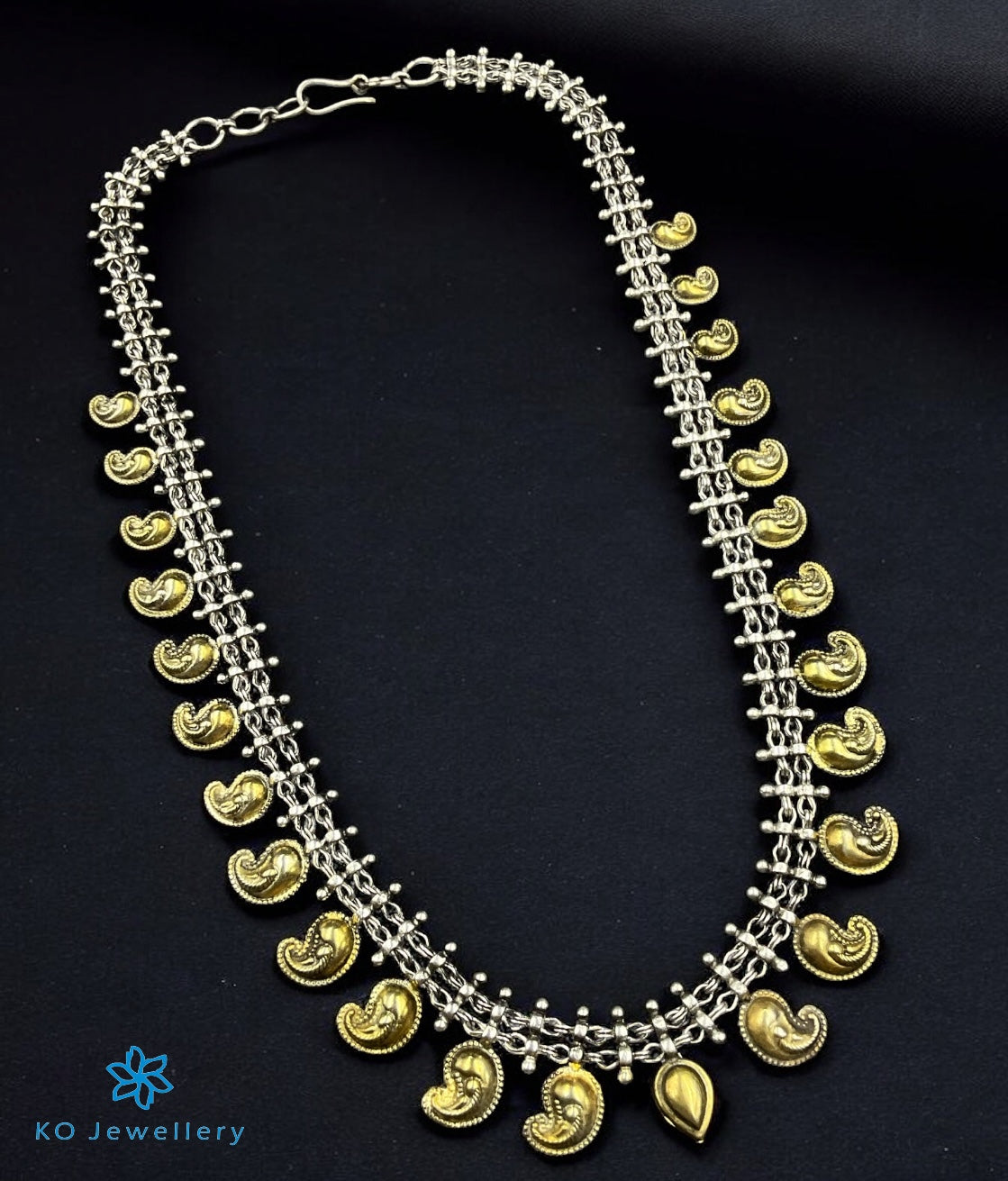 The Aarna Silver Stamped Paisley Necklace (2 tone)