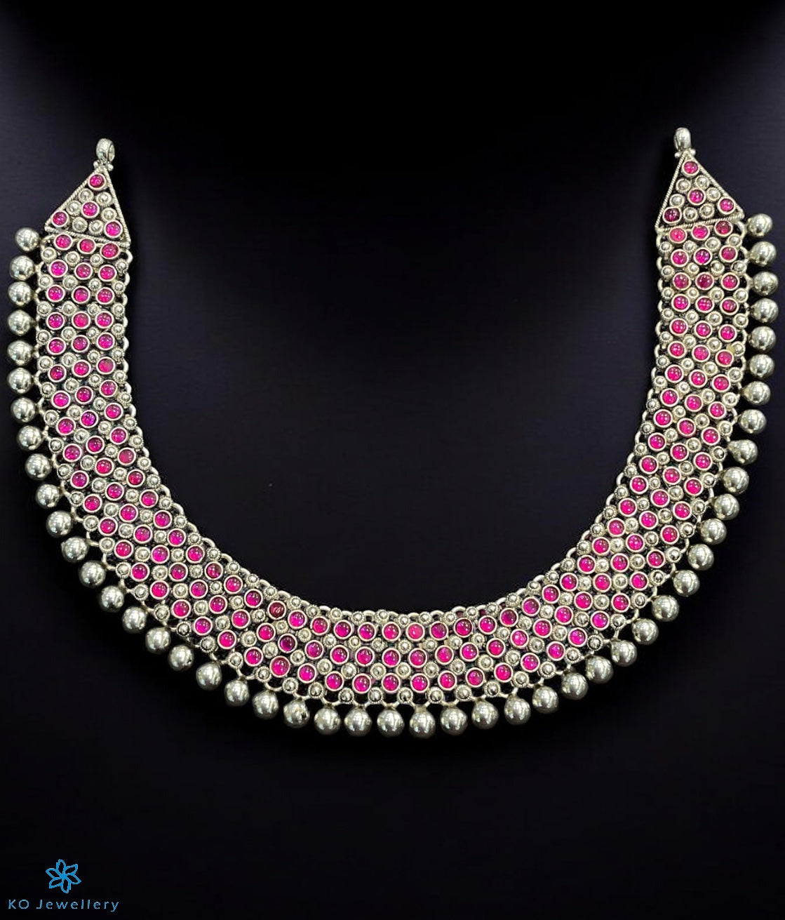 Elevate your jewellery collection with a piece that speaks of heritage, artistry, and enduring beauty. This beautiful necklace is also available in a radiant gold-finish.