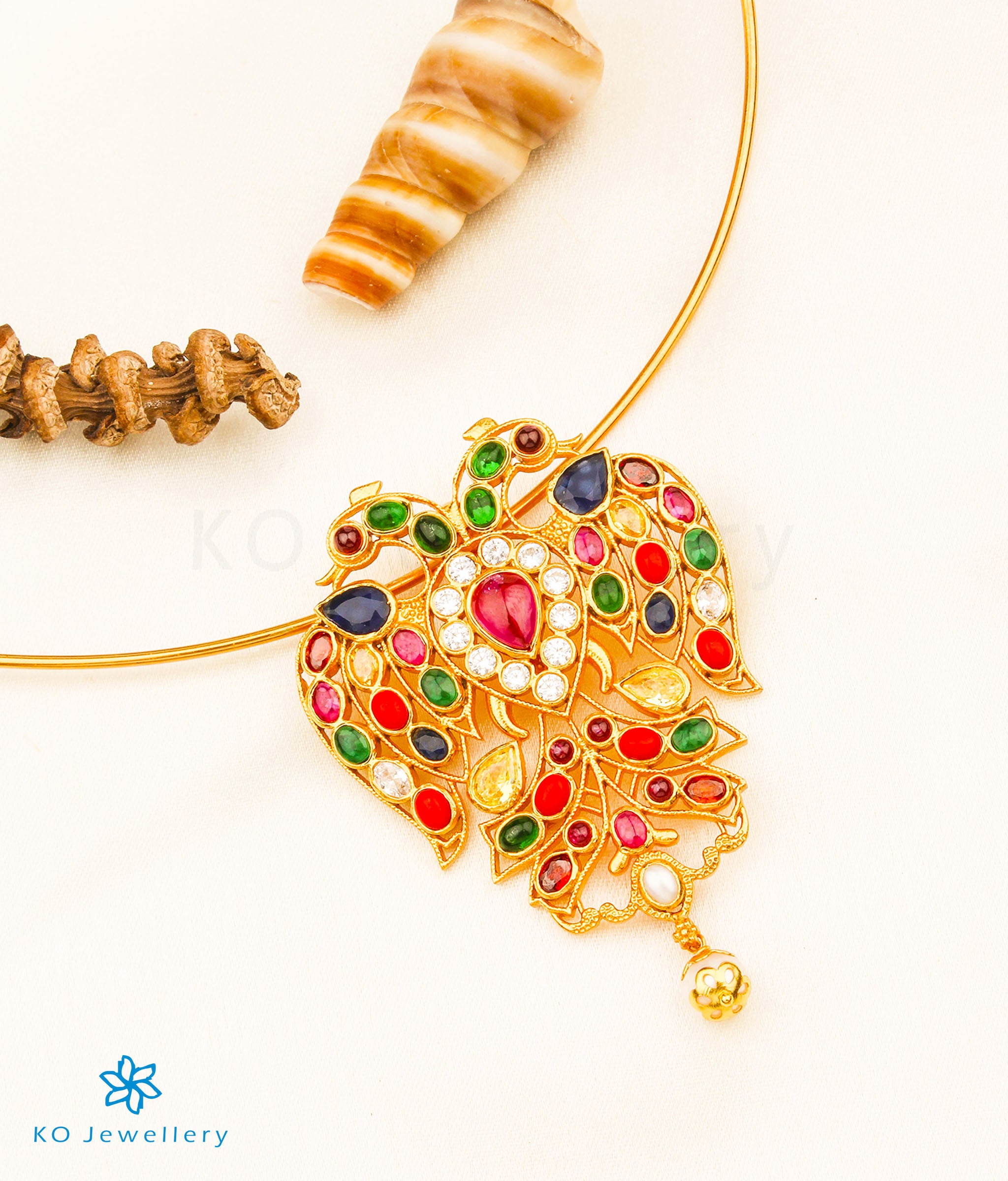 The Classic Gandaberunda Silver Navratna Pendant (Blue/Thin Chain)