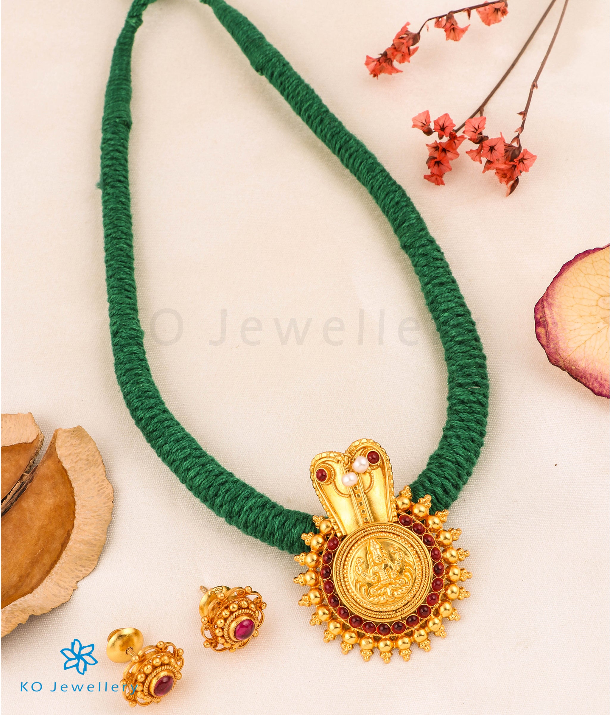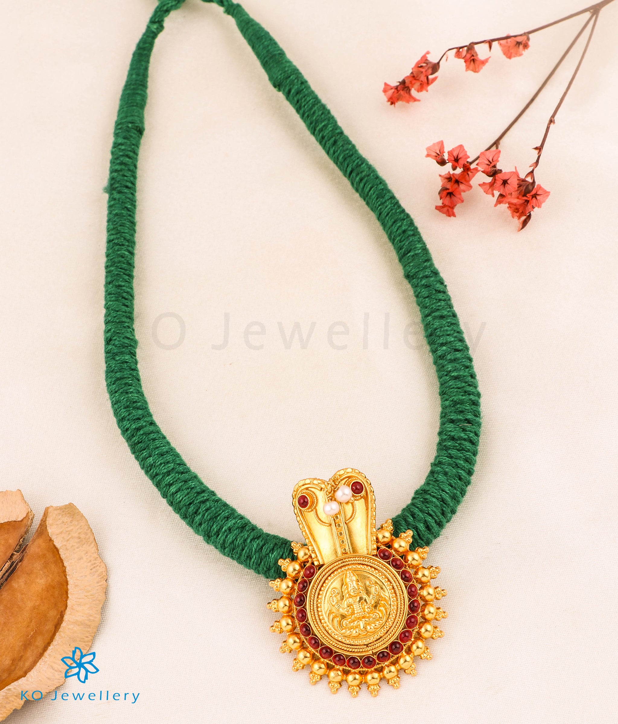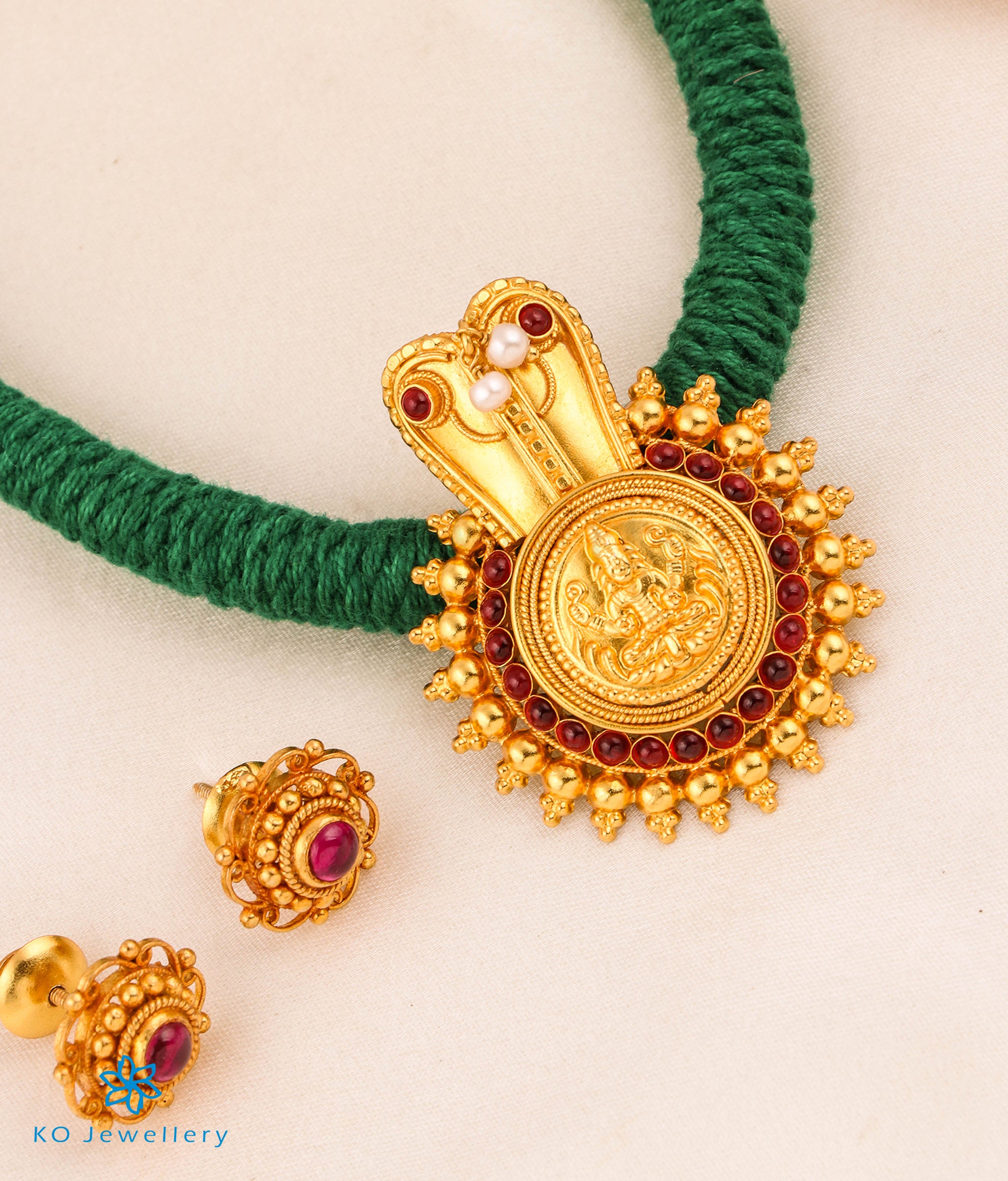 The Vijeta Silver Kodava Thread Necklace (Green)