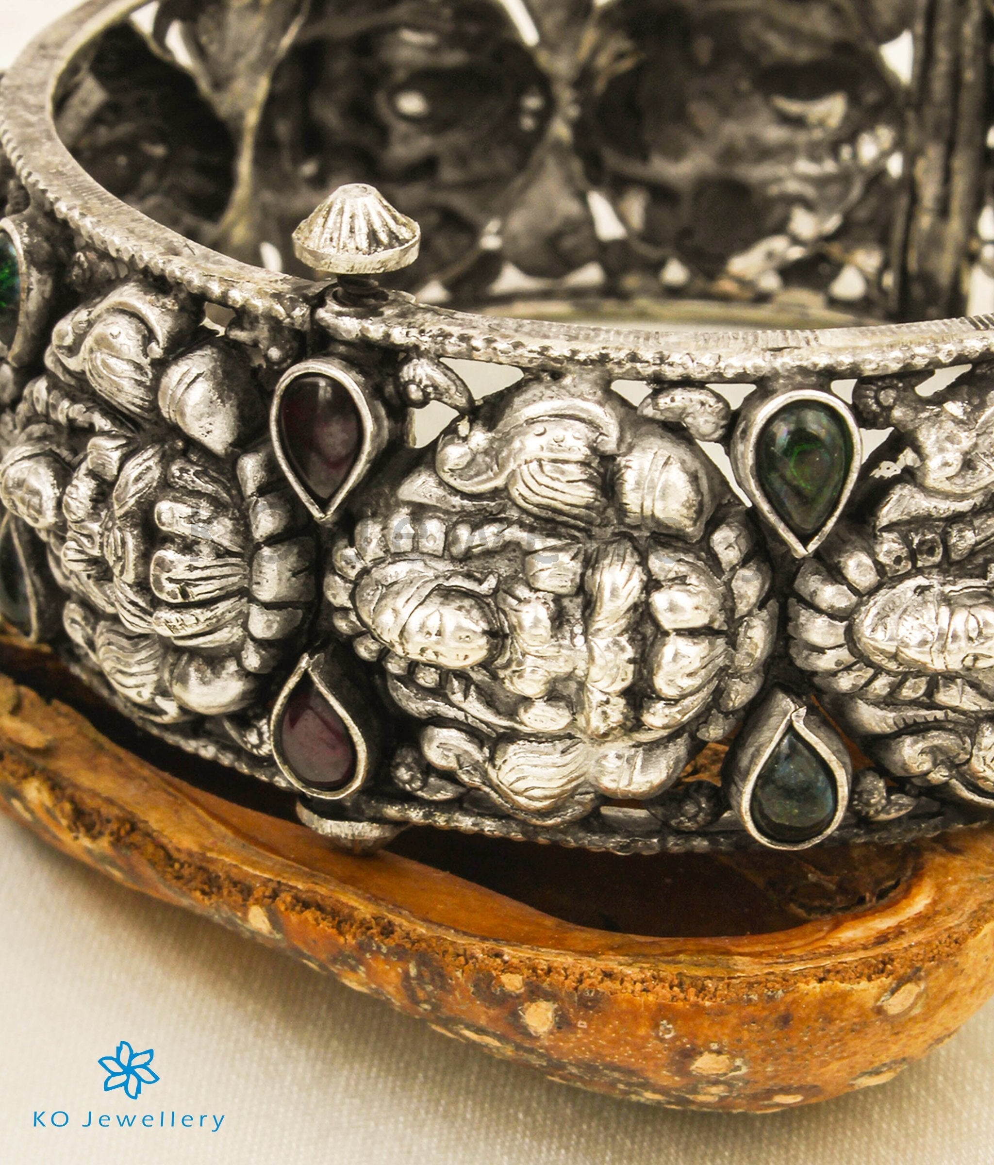 The Kritika Silver Lakshmi Nakshi Bracelet-Single (Oxidised) (Size/2.2/2.4/2.6/2.8)