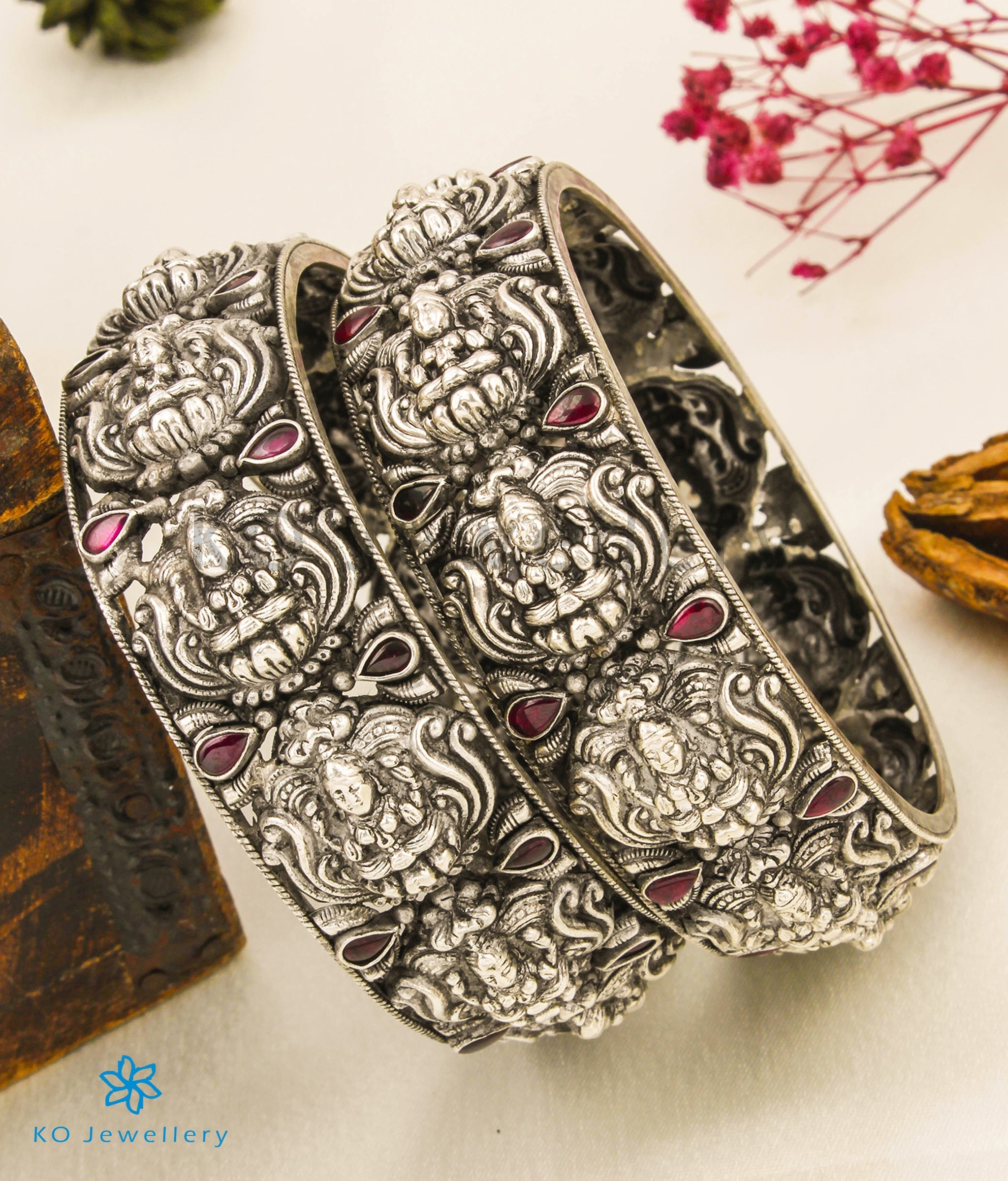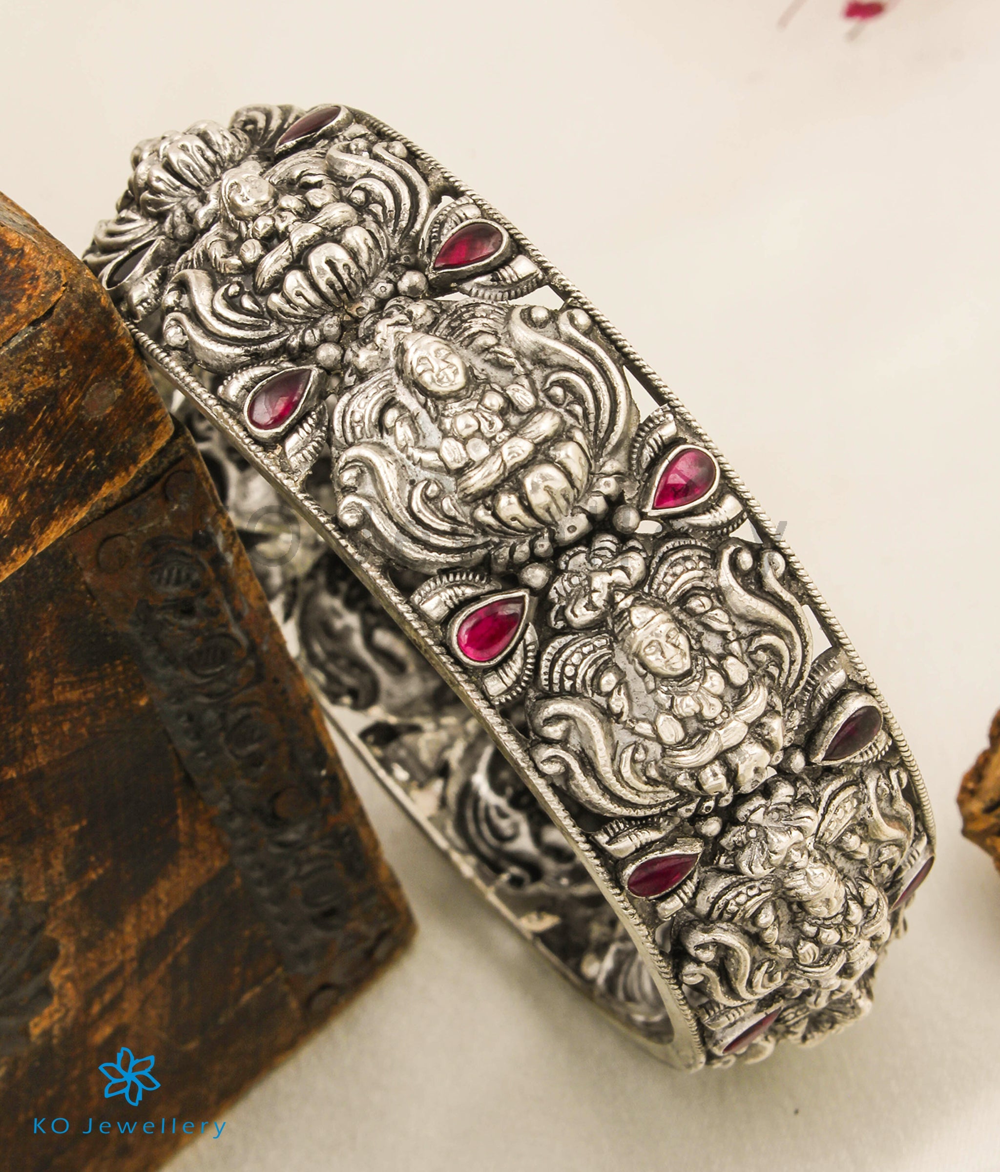 The Navya Silver Lakshmi Nakkasi Bangle- Single (Oxidised/Size 2.2/2.4/2.6/2.8)