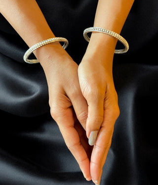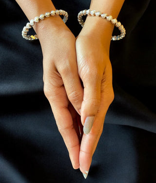 The Jhilmil Silver Pearl Bangle- Single (Oxidised-Size/2.2/ 2.4/2.6/2.8)