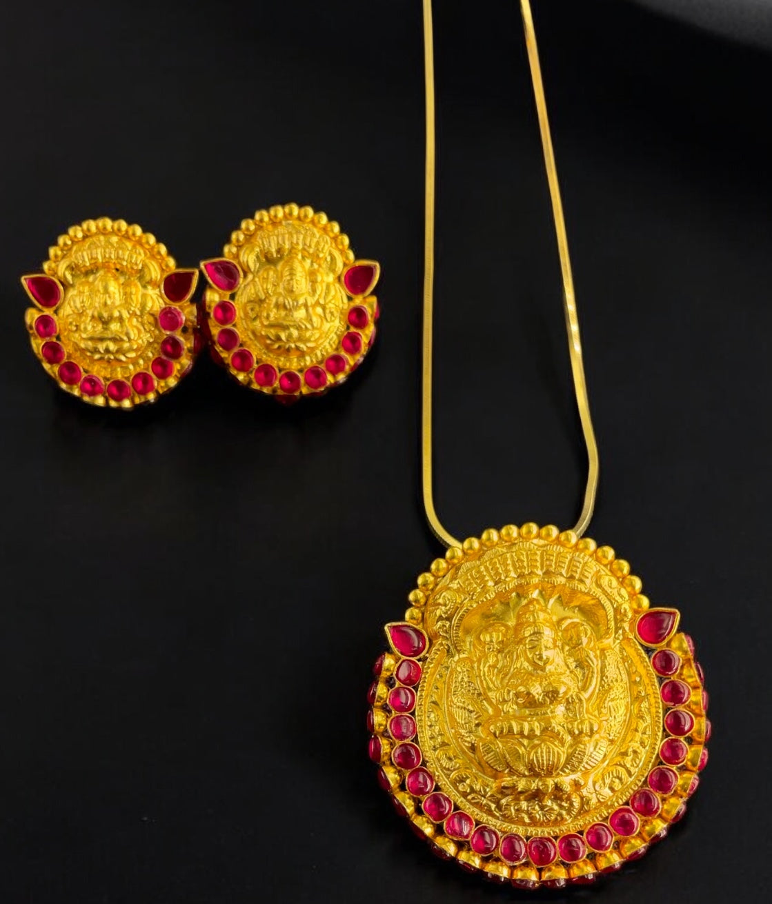 The Abhata Silver Kempu Lakshmi Pendant & Earrings