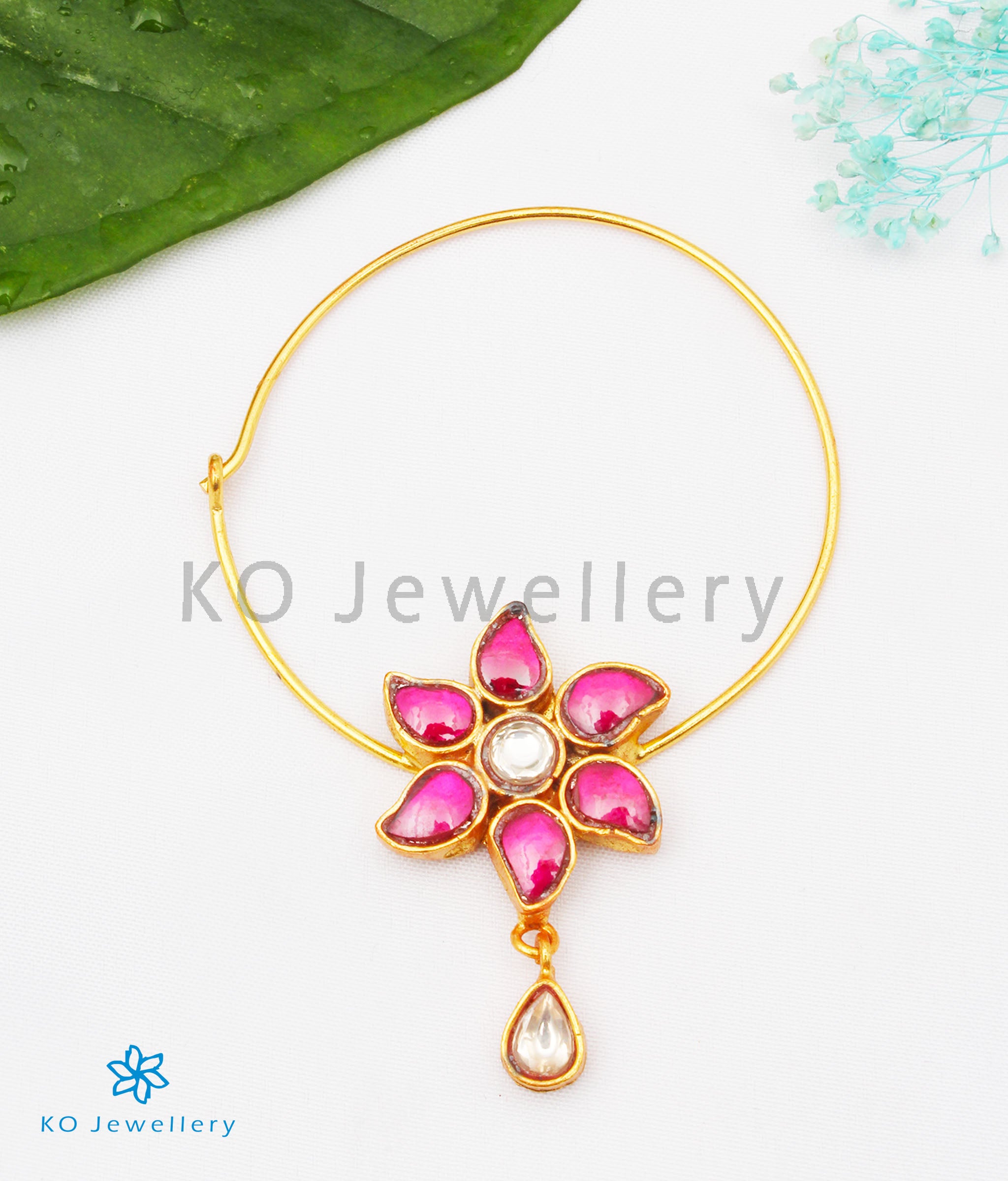 Make a style statement with this gorgeous nose pin crafted using the ancient kundan jadau technique. Pair it with your traditional outfits, or style them with your indo- western outfits they look stunning .This piece is handcrafted in Sterling silver (92.5%) and gold-dipped.