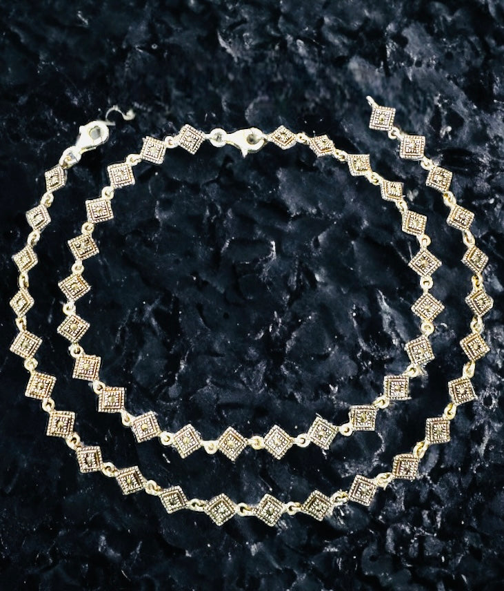 The Nargis Silver Marcasite Anklets - Buy stylish, latest Pure Silver 92.5 exclusive anklets online - KO Jewellery
