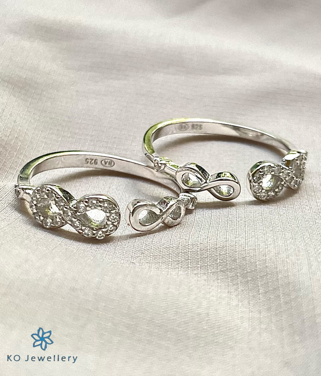 A gorgeous pair of sterling silver (92.5%) toe-rings set with high quality cubic Zirconia in a flawless design . The Rhodium e-coat finish makes them more attractive.The silver band at the front is an open one and can be adjusted according to your toe-size.The price given is for a pair of toerings (2 pieces).