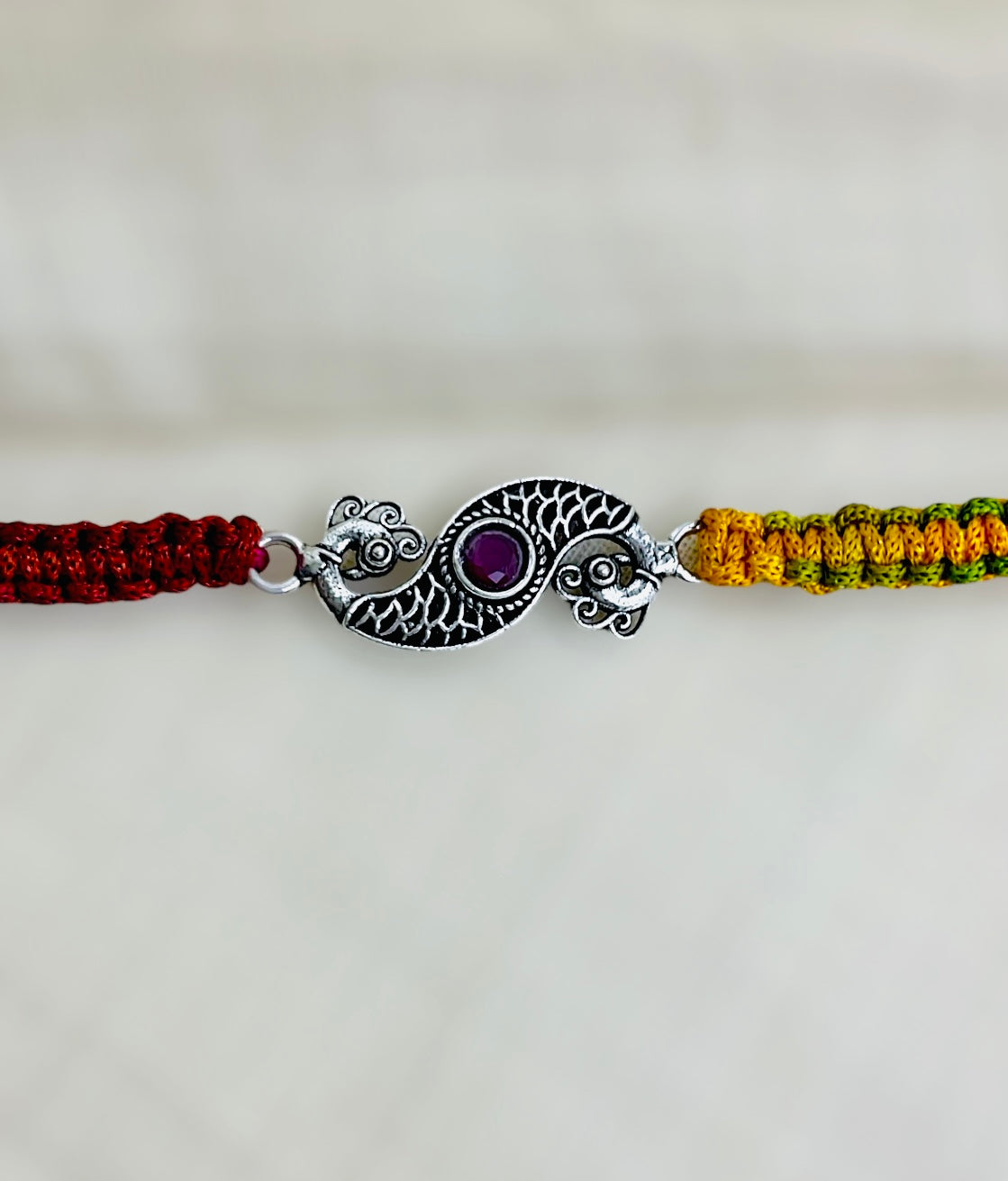 The Twin Peacock Silver Rakhi- Buy pure Silver rakhi online - KO Jewellery